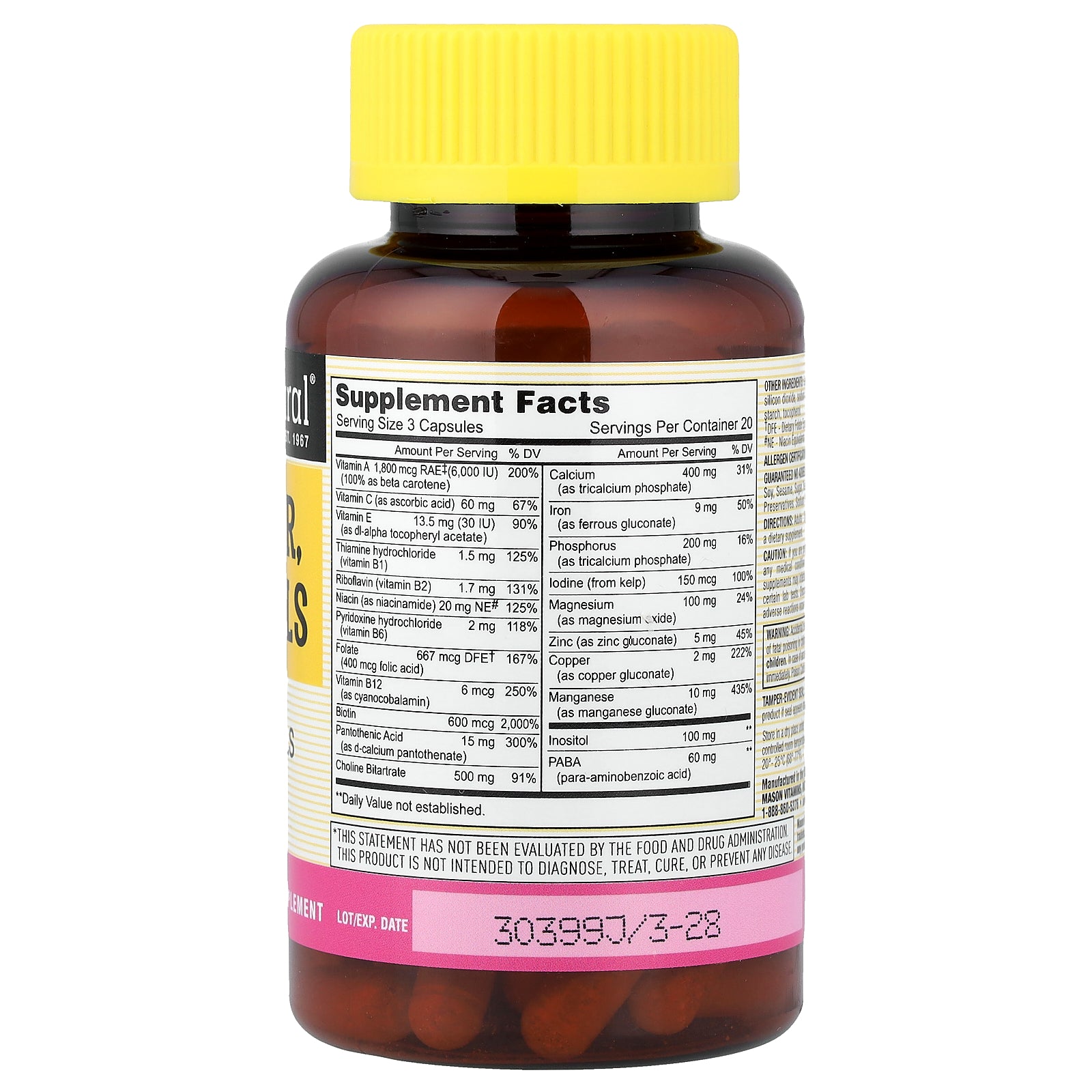 | Choline Bitartrate | 500 mg | 91% |