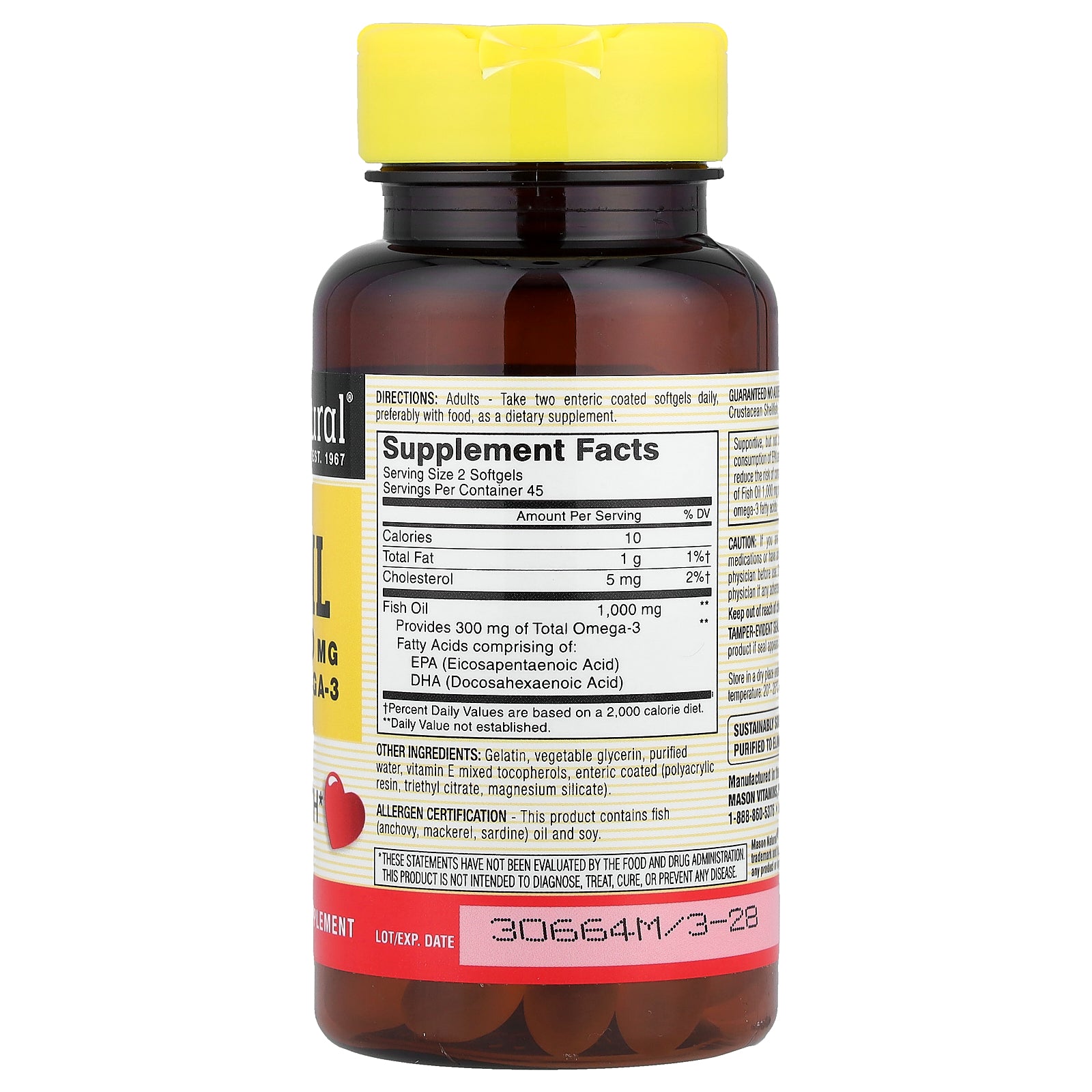 Fish Oil is one of the richest food sources of omega-3 fatty acids available, which may support both heart and brain health. Unfortunately burping, fishy breath, and even nausea are common side effects associated with taking fish oil supplements. This is, in part, because these supplements contain a high dose of concentrated fatty acids that some find difficult to digest. Our “No burp” fish oil is popular among people who want the benefits of fish oil without these side effects because it uses a special softgel that is enteric coated which may reduce incidence of burping and other side effects. And Omega-3s may help support the normal, healthy blood clotting process in the body, along with, healthy levels of cholesterol and triglycerides. Because fish oil is not part of a typical diet, a daily fish oil supplement may help provide the many health benefits of omega-3 fatty acids. Mason Natural has a broad range of omega-3 fish oil supplements to suit your needs.