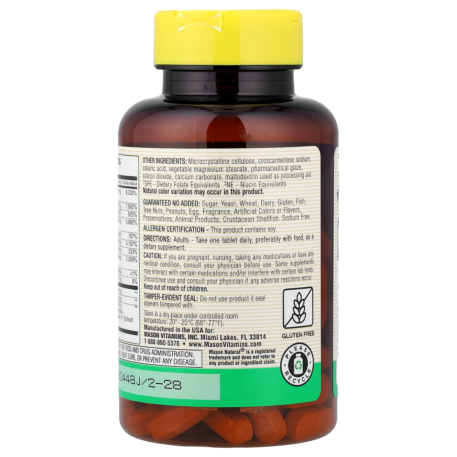 B vitamins play a role in almost every major biological process within the body. People often take B vitamin supplements to support their cardiovascular health, metabolism and mood support. B vitamins are involved in the synthesis of important brain chemicals such as serotonin and dopamine. If the body is unable to produce these chemicals in adequate amounts, it could impede the quality of our daily lives. People who have dietary restrictions and/or are suffering from certain illnesses may have higher requirements for certain B vitamins. While there are B vitamins in many of the foods we eat, some people have difficulty absorbing them efficiently and/or may not be getting them in the proper balance. Having a high potency B vitamin supplement that contains all of the critical B vitamins in the proper proportion can be a convenient way to get these important nutrients. All Mason Natural products are produced in a GMP certified facility and laboratory tested for purity.