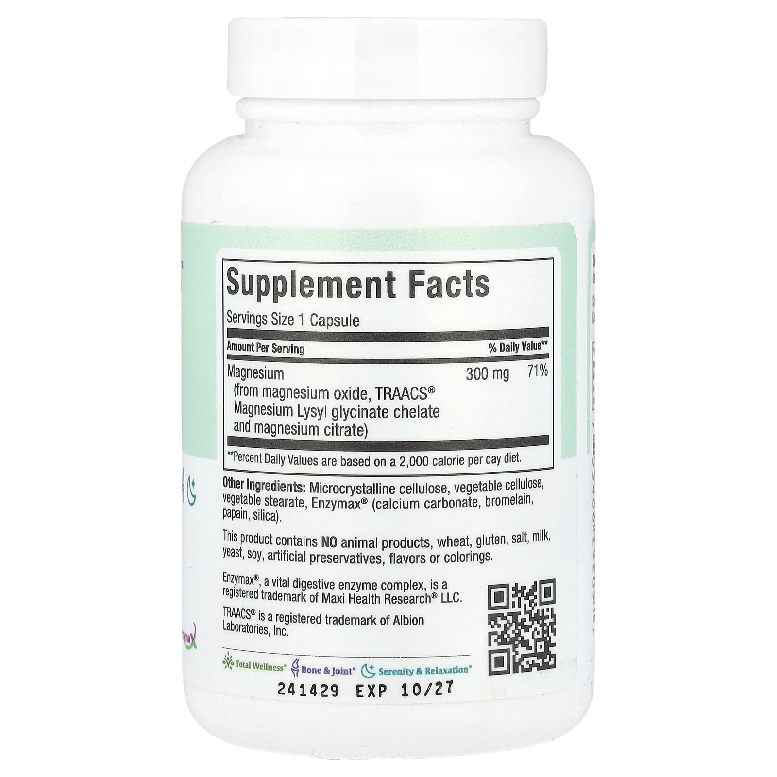 | Magnesium (from magnesium oxide, TRAACS® Magnesium Lysyl glycinate chelate and magnesium citrate) |