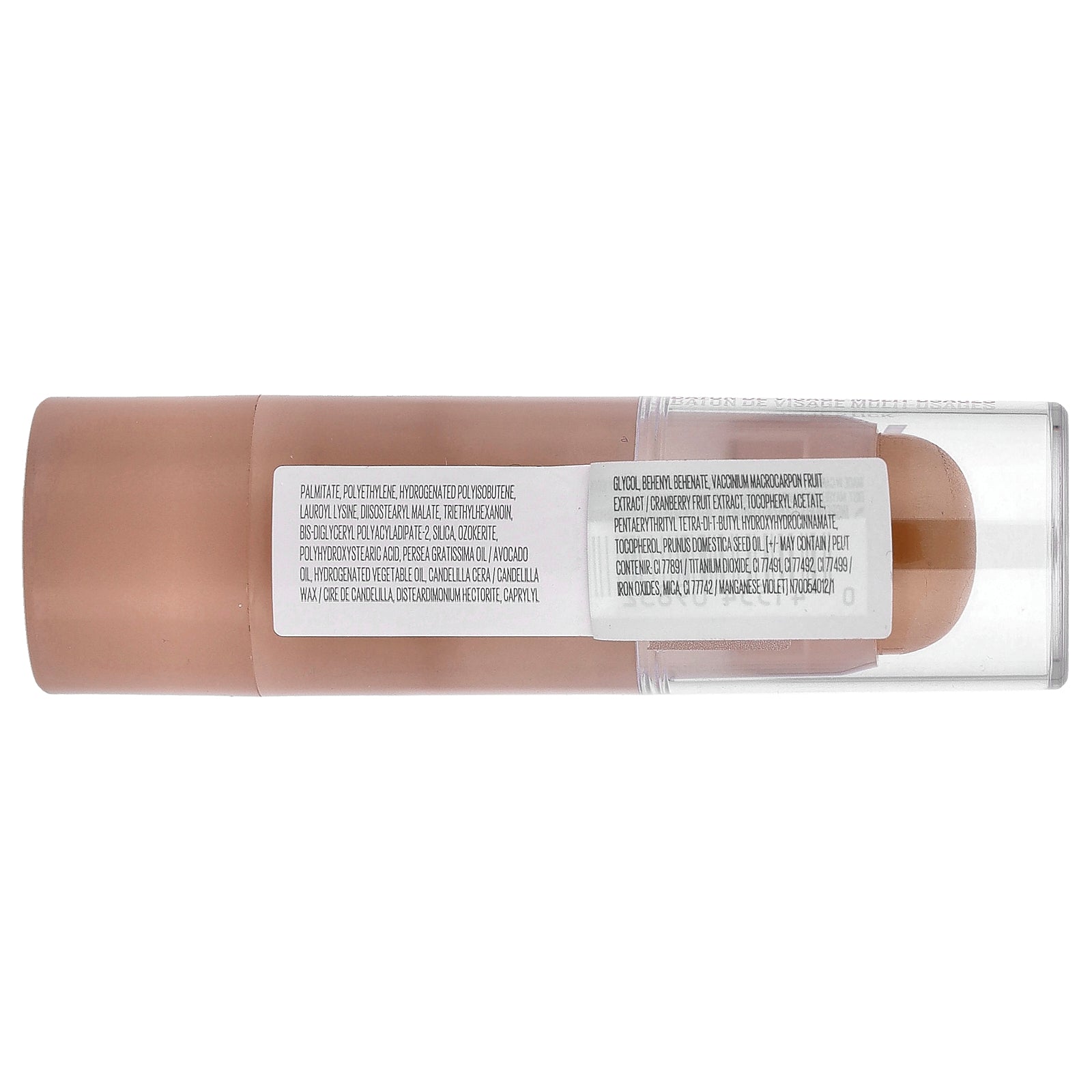 Ethylhexyl palmitate, polyethylene, hydrogenated polyisobutene, lauroyl lysine, diisostearyl malate, triethylhexanoin, bis-diglyceryl polyacyladipate-2, silica, ozokerite, polyhydroxystearic acid, persea gratissima oil / avocado oil, hydrogenated vegetable oil, candelilla cera / candelilla wax / cire de candelilla, disteardimonium hectorite, caprylyl glycol behenyl behenate, vaccinium macrocarpon fruit extract / cranberry fruit extract, tocopheryl acetate, pentaerythrityl tetra-di-t-butyl hydroxyhydrocinnamate, tocopherol, prunus domestica seed oil [+/- may contain: ci 77891 / titanium dioxide, ci 77491, ci 77492, ci 77499/ iron oxides, mica, ci 77742 / manganese violet].