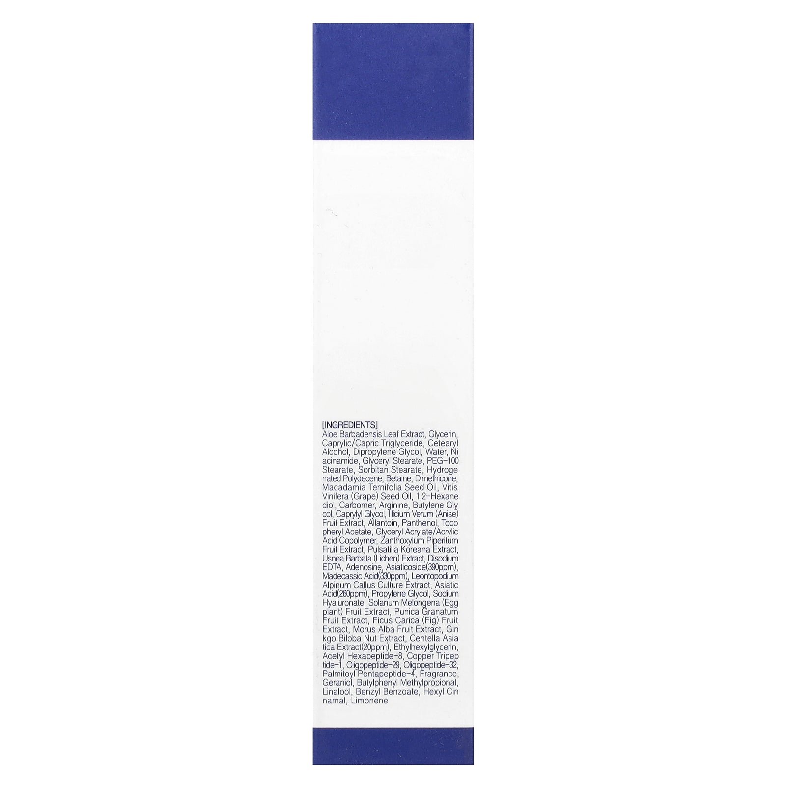 Aloe barbadensis leaf extract, glycerin, caprylic/capric triglyceride, cetearyl alcohol, dipropylene glycol, water, niacinamide, glyceryl stearate, peg-100 stearate, sorbitan stearate, hydrogenated polydecene, betaine, dimethicone, macadamia ternifolia seed oil, vitis vinifera (grape) seed oil, 1,2-hexane diol, carbomer, arginine, butylene glycol, caprylyl glycol, illicium verum (anise) fruit extract, allantoin, panthenol, tocopheryl acetate, glyceryl acrylate/acrylic acid copolymer, zanthoxylum piperitum fruit extract, pulsatilla koreana extract, usnea barbata (lichen) extract, disodium edta, adenosine, asiaticoside (390 ppm), madecassic acid (330 ppm), leontopodium alpinum callus culture extract, asiatic acid (260 ppm), propylene glycol, sodium hyaluronate, solanum melongena (egg plant) fruit extract, punica granatum fruit extract, ficus carica (fig) fruit extract, morus alba fruit extract, ginkgo biloba nut extract, centella asiatica extract (20 ppm), ethylhexylglycerin, acetyl hexapeptide-8, copper tripeptide-1, oligopeptide-29, oligopeptide-32, palmitoyl pentapeptide-4, fragrance, geraniol, butylphenyl methylpropional, linalool, benzyl benzoate, hexyl cinnamal, limonene.