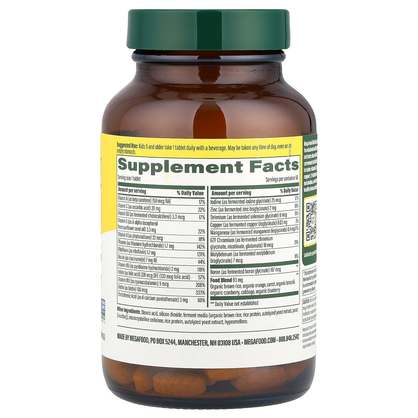 MegaFood Kids One Daily is a foundational multivitamin made with 21 nutrients plus real food. Comes in a convenient mini tablet. This multi includes vitamin C & zinc for immune support, b vitamins to support energy metabolism, and vitamin D to support healthy bones and teeth.