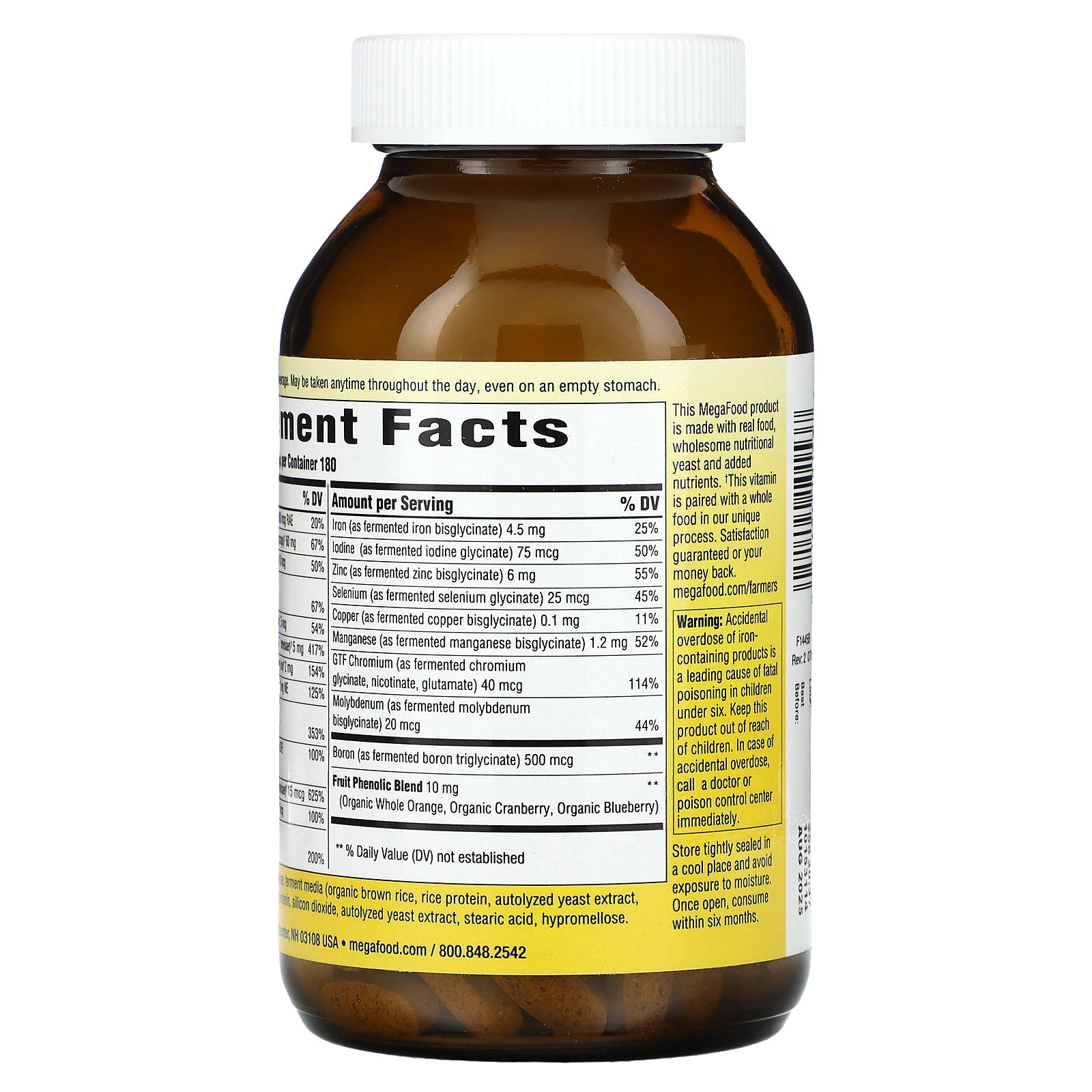 MegaFood One Daily is a foundational multivitamin in a convenient one-a-day tablet, designed to support the nutritional needs of adults. Crafted with a blend of 21 vitamins and minerals, this multi includes vitamin C & zinc for immune support, B vitamins to support energy metabolism, and vitamin D to support healthy bones. Formulated with iron.