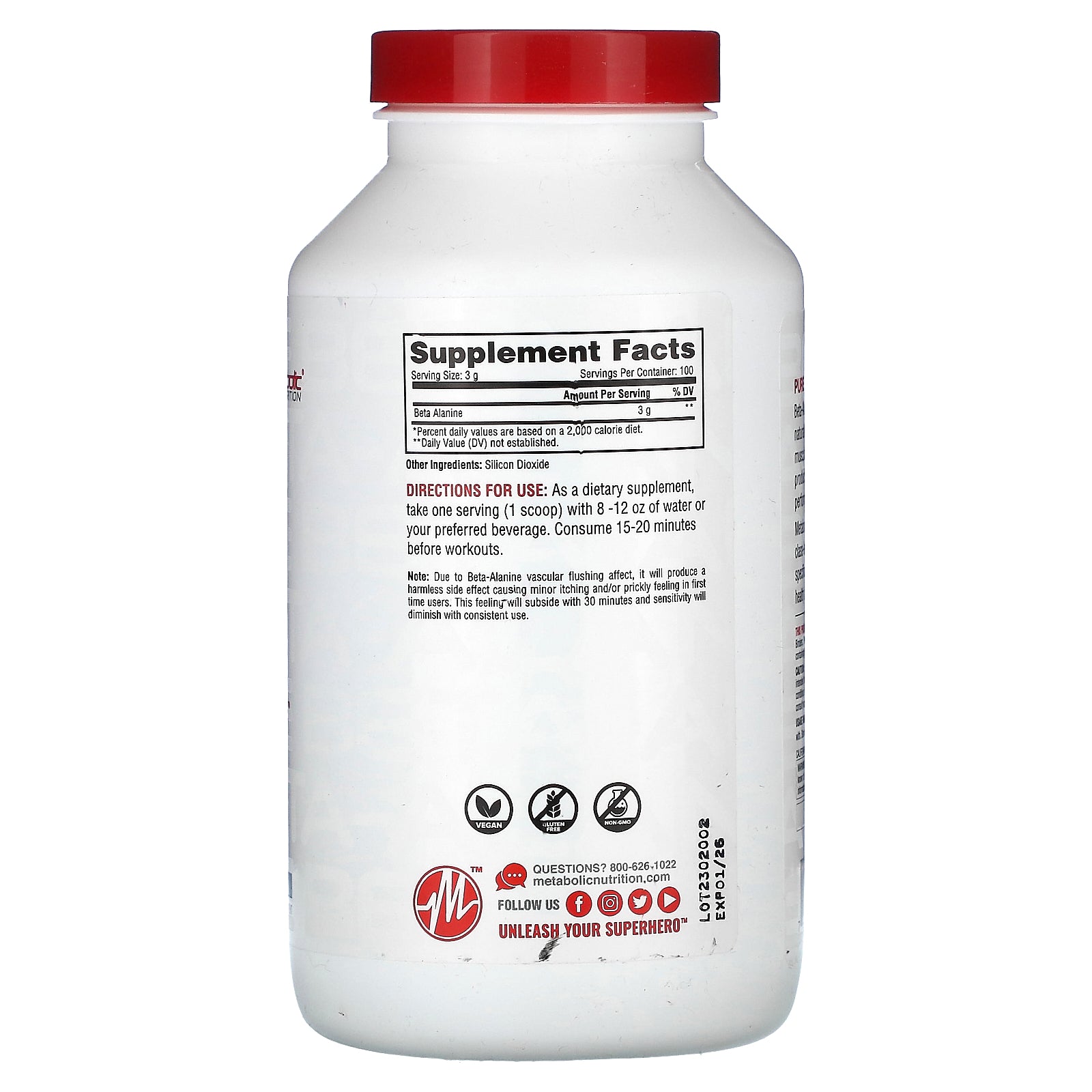 Metabolic Nutrition provides a pharmaceutical grade, class-leading 3,000 mg of the purest form of Beta-Alanine, specifically developed for individuals who want to maximize their health and wellness.