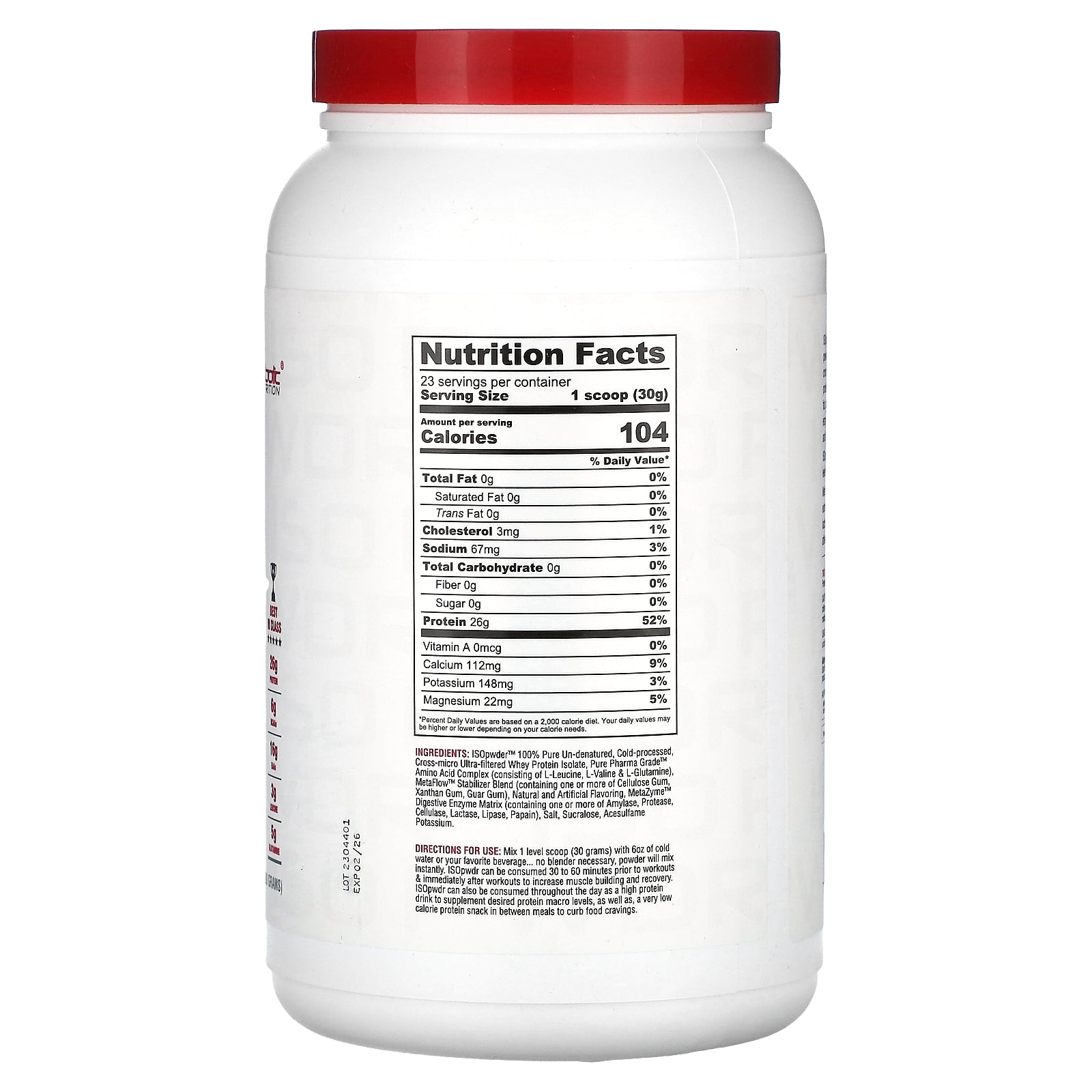 ISOpwdr rapidly absorbing isolate protein quickly increase blood serum amino acid levels to increase protein synthesis for rapid muscular growth, strength and recovery.