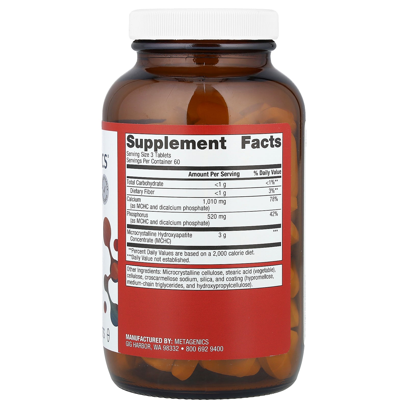 | Calcium (as MCHC and dicalcium phosphate) | 1,010 mg | 78% |