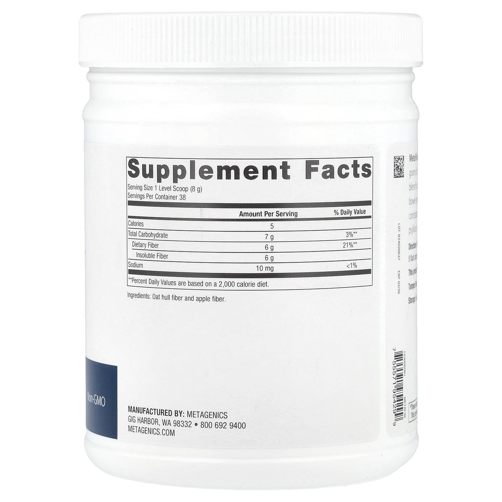 MetaFiber® is a blend of oat hull and apple fiber, providing 6 grams of dietary fiber per serving. This low-allergy-potential fiber blend is designed to support healthy intestinal transit time and bowel regularity, and offers support for those with occasional constipation.