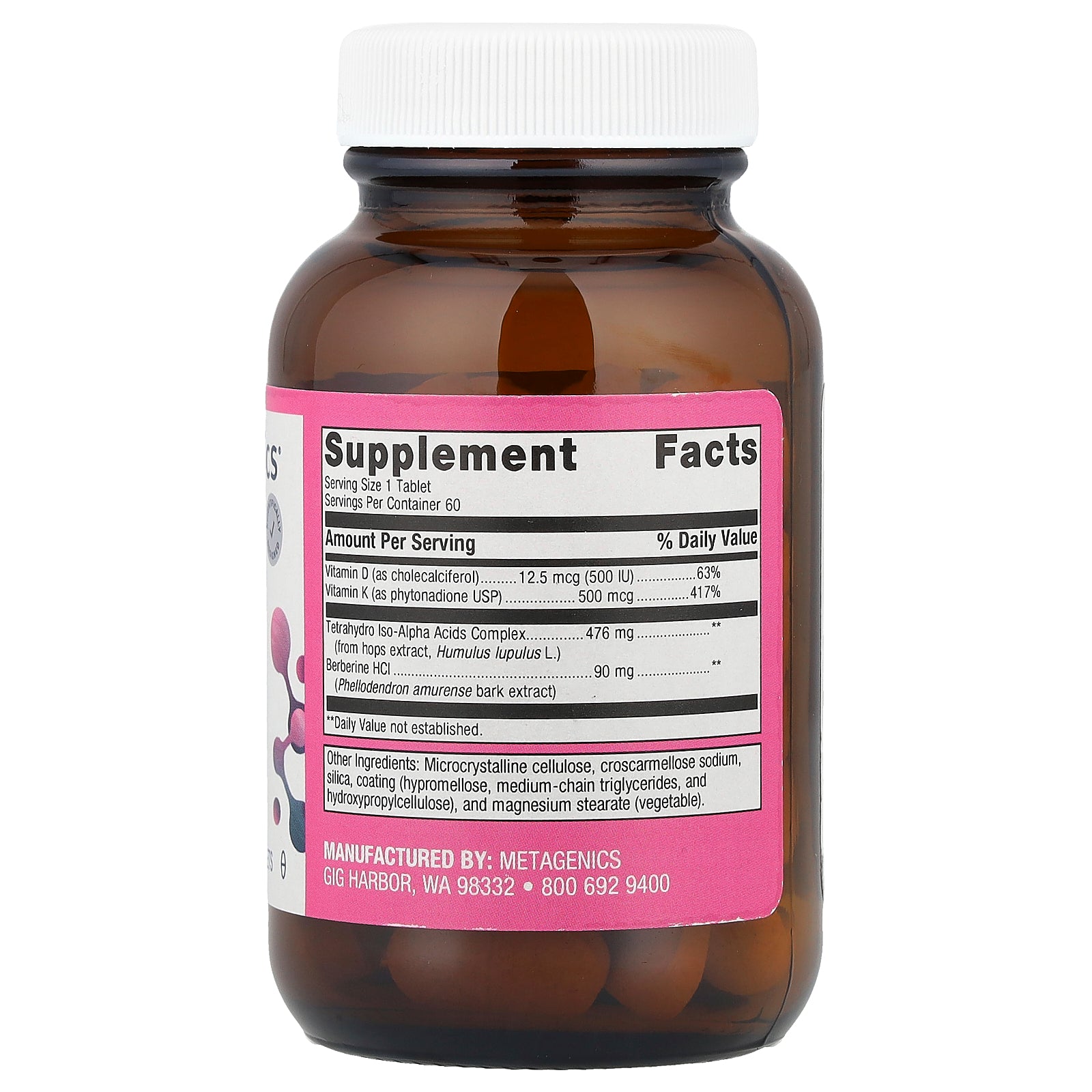 - Advanced formula: Vitamins D and K, phytonutrients, berberine, and SKRMs (selective kinase response modulators)