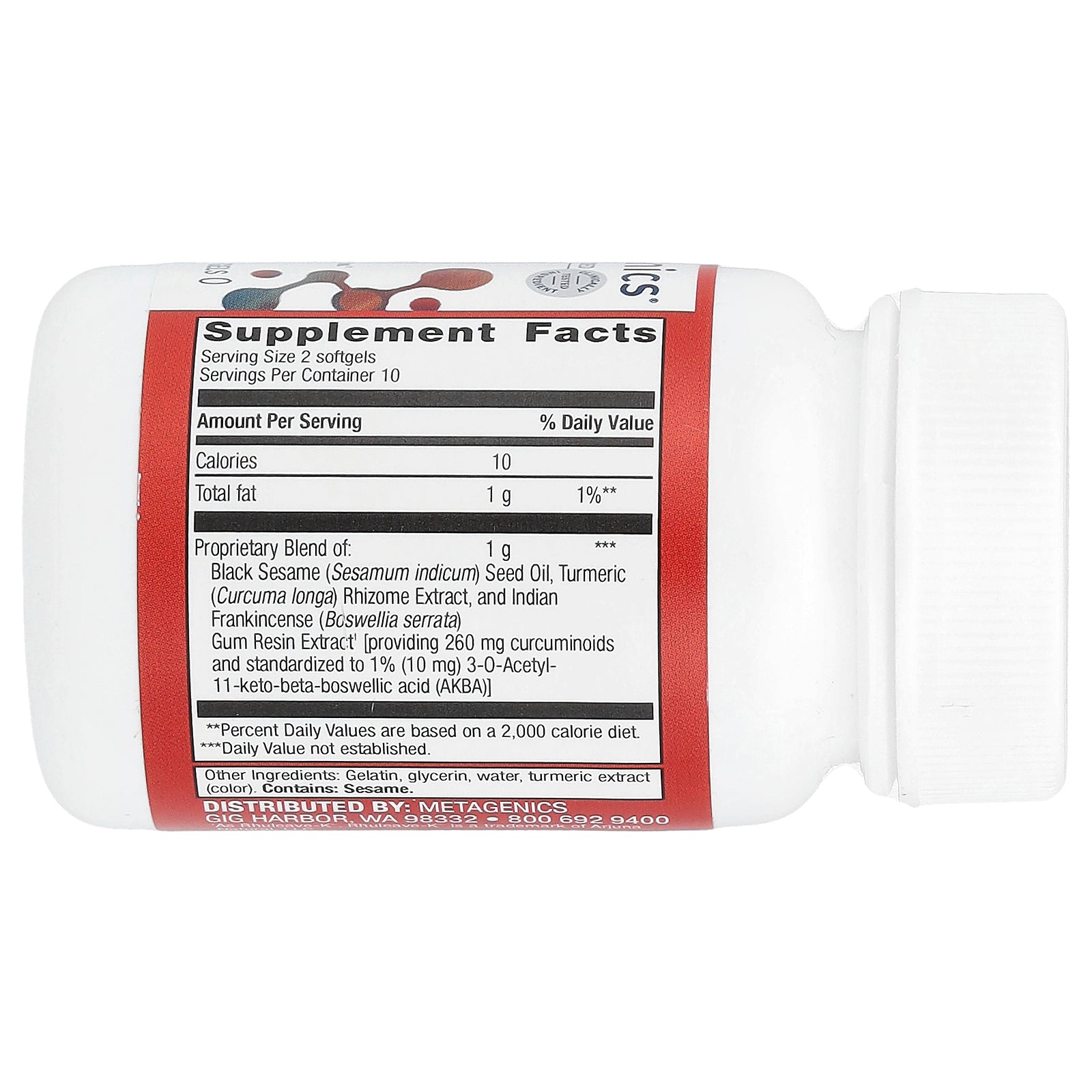 | Proprietary Blend of: Black Sesame (Sesamum indicum) Seed Oil, Turmeric (Curcuma longa) Rhizome Extract, and Indian Frankincense (Boswellia serrata) Gum Resin Extract† [providing 260 mg curcuminoids and standardized to 1% (10 mg) 3-0-Acetyl-11-keto-beta-boswellic acid (AKBA)] |