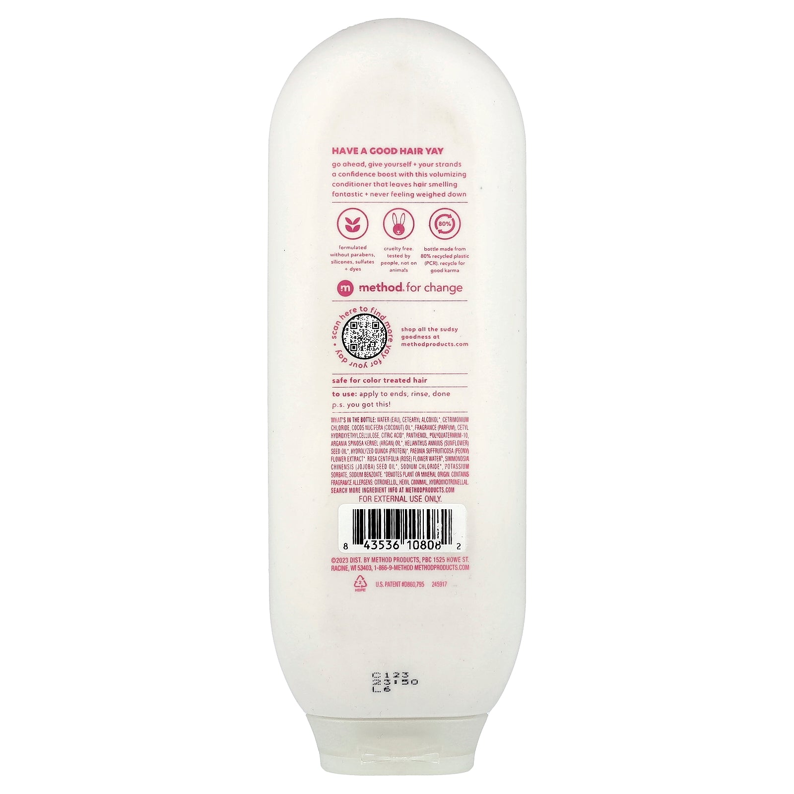 Water, cetearyl alcohol*, cetrimonium chloride, cocos nucifera (coconut) oil*, fragrance (parfum), cetyl hydroxyethylcellulose, citric acid*, panthenol, polyquaternium-10, argania spinosa kernel (argan) oil*, helianthus annuus (sunflower) seed oil*, hydrolyzed quinca (protein)*, paeonia suffruticosa (peony) flower extract*, rosa centifolia (rose) flower water*, simmondsia chinensis (jojoba) seed oil*, sodium chloride*, potassium sorbate, sodium benzoate.