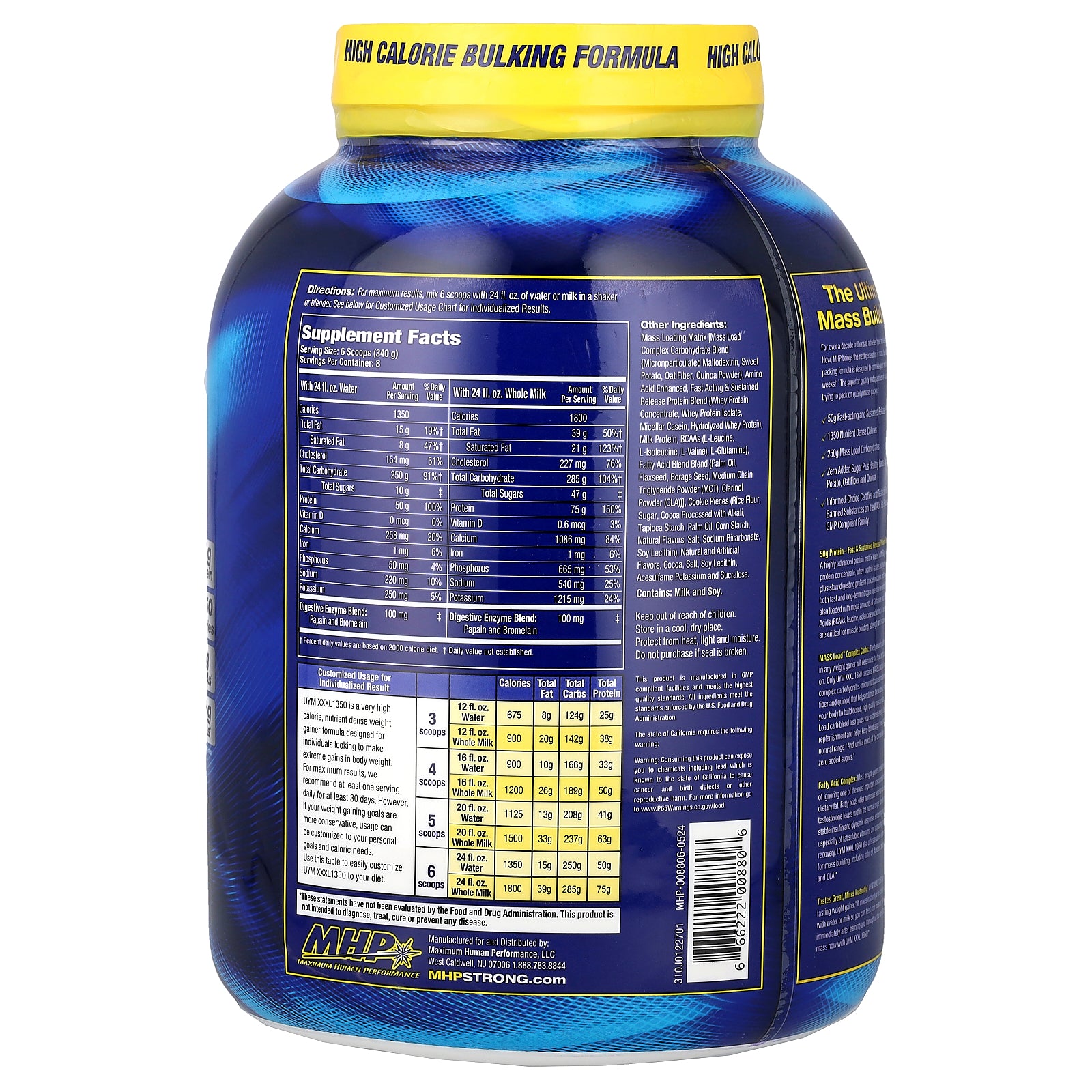 For over a decade millions of athletes have trusted Up Your Mass® to help them add extreme muscle mass, strength and speed recovery. Now, MHP brings the next generation in mass building excellence with Up Your Mass XXXL 1350! This scientifically advanced mass packing formula is designed to complete your nutritional program and is so powerful, it can help pack on up to 18 lbs. of mass in just 5 weeks! The superior quality and quantities of muscle building nutrients in UYM XXXL 1350 makes it the ideal weight gainer for anyone trying to pack on quality mass quickly.
