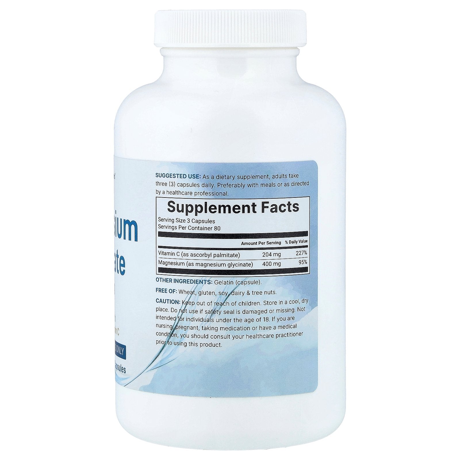 | Magnesium (as magnesium glycinate) | 400 mg | 95% |