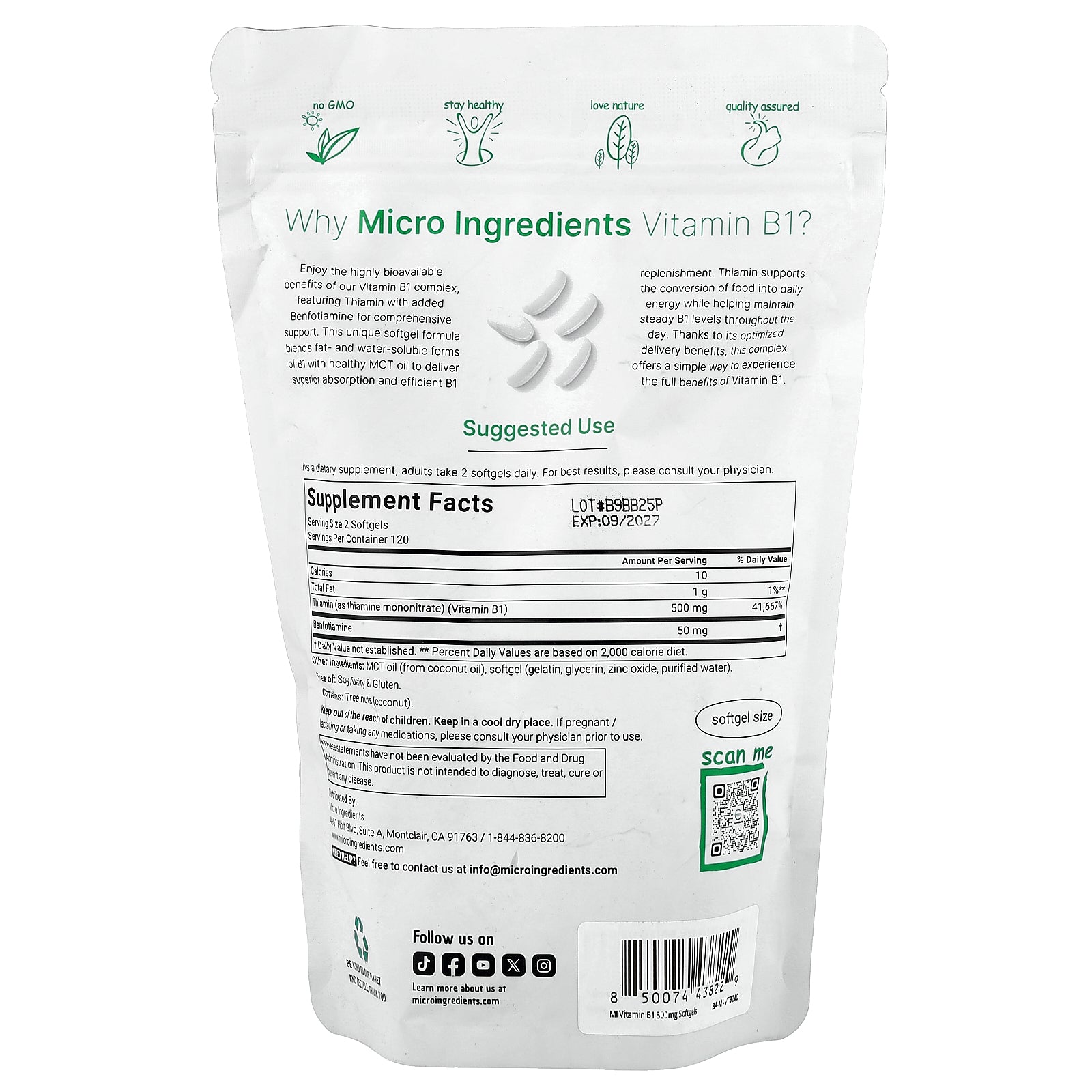Enjoy the highly bioavailable benefits of our Vitamin B1 complex, featuring Thiamin with added Benfotiamine for comprehensive support. This unique softgel formula blends fat- and water-soluble forms of B1 with healthy MCT oil to deliver superior absorption and efficient B1 replenishment. Thiamin supports the conversion of food into daily energy while helping maintain steady B1 levels throughout the day. Thanks to its optimized delivery benefits, this complex offers a simple way to experience the full benefits of Vitamin B1.