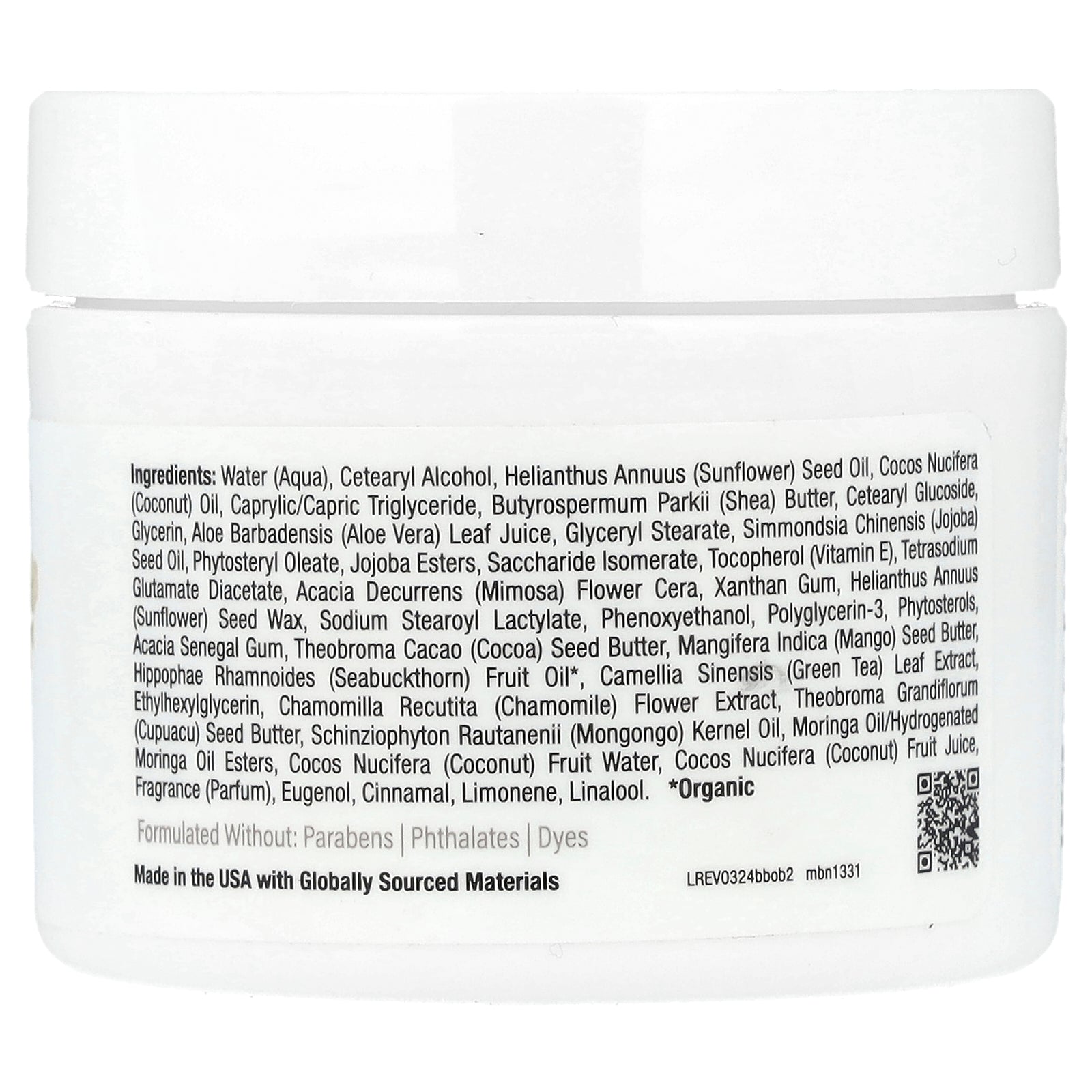 Water (Aqua), Cetearyl Alcohol, Helianthus Annuus (Sunflower) Seed Oil, Cocos Nucifera (Coconut) Oil, Caprylic/Capric Triglyceride, Butyrospermum Parkii (Shea) Butter, Cetearyl Glucoside, Glycerin, Aloe Barbadensis (Aloe Vera) Leaf Juice, Glyceryl Stearate, Simmondsia Chinensis (Jojoba) Seed Oil, Phytosteryl Oleate, Jojoba Esters, Saccharide Isomerate, Tocopherol (Vitamin E), Tetrasodium Glutamate Diacetate, Acacia Decurrens (Mimosa) Flower Cera, Xanthan Gum, Helianthus Annuus (Sunflower) Seed Wax, Sodium Stearoyl Lactylate, Phenoxyethanol, Polyglycerin-3, Phytosterols, Acacia Senegal Gum, Theobroma Cacao (Cocoa) Seed Butter, Mangifera Indica (Mango) Seed Butter, Hippophae Rhamnoides (Seabuckthorn) Fruit Oil*, Camellia Sinensis (Green Tea) Leaf Extract, Ethylhexylglycerin, Chamomilla Recutita (Chamomile) Flower Extract, Theobroma Grandiflorum (Cupuacu) Seed Butter, Schinziophyton Rautanenii (Mongongo) Kernel Oil, Moringa Oil/Hydrogenated Moringa Oil Esters, Cocos Nucifera (Coconut) Fruit Water, Cocos Nucifera (Coconut) Fruit Juice, Fragrance (Parfum), Eugenol, Cinnamal, Limonene, Linalool.