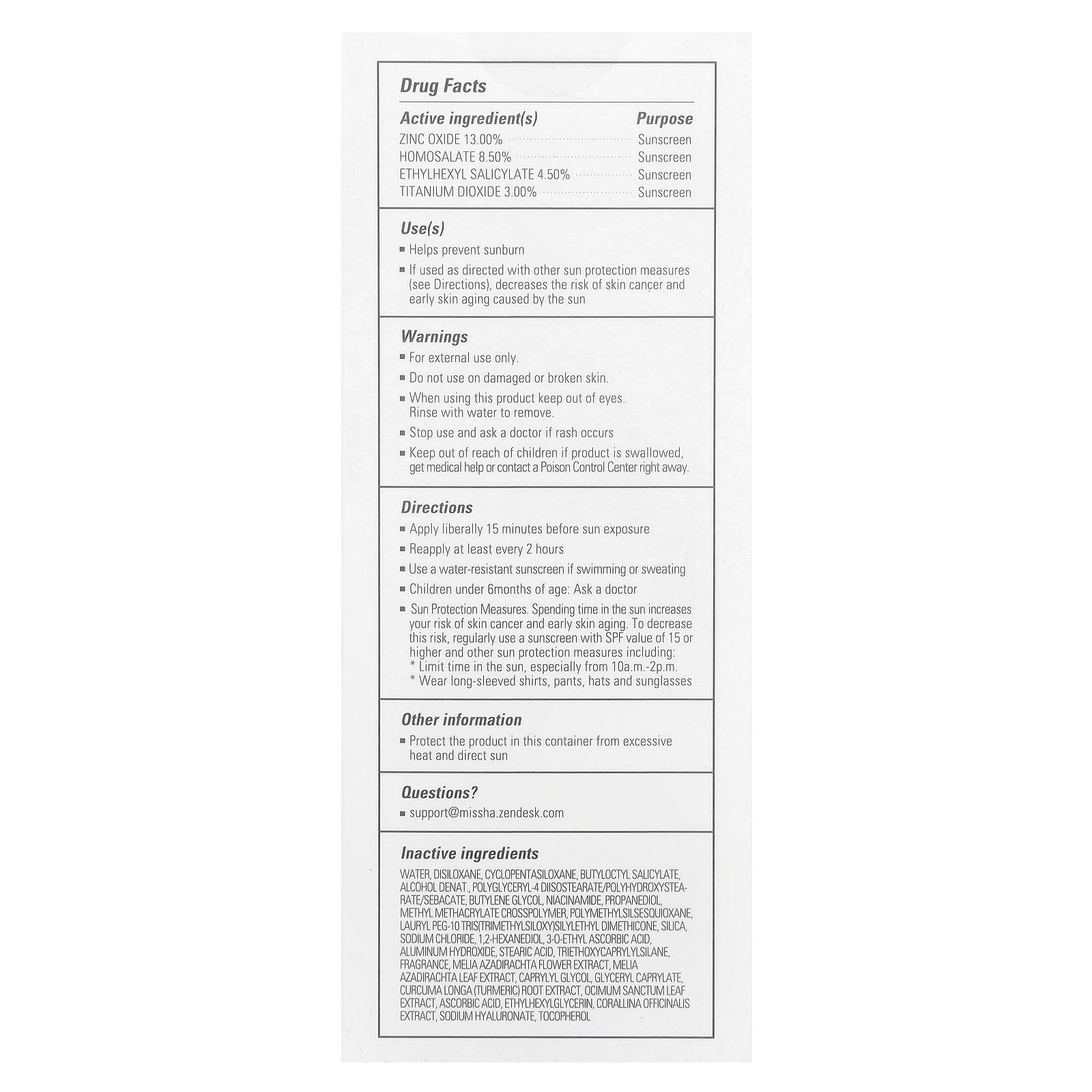 | Zinc Oxide 13.00% | Sunscreen |