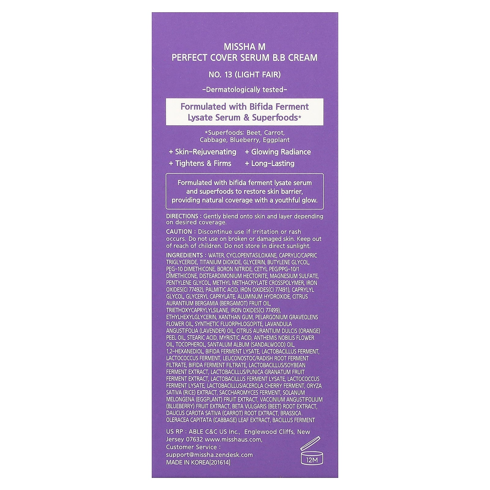 Water, cyclopentasiloxane, caprylic/capric triglyceride, titanium dioxide, glycerin, butylene glycol, peg-10 dimethicone, boron nitride, cetyl peg/ppg-10/1 dimethicone, disteardimonium hectorite, magnesium sulfate, pentylene glycol, methyl methacrylate crosspolymer, iron oxides (ci 77492), palmitic acid, iron oxides (ci 77491), caprylyl glycol, glyceryl caprylate, aluminum hydroxide, citrus aurantium bergamia (bergamot) fruit oil, triethoxycaprylylsilane, iron oxides (ci 77499), ethylhexylglycerin, xanthan gum, pelargonium graveolens flower oil, synthetic fluorphlogopite, lavandula angustifolia (lavender) oil, citrus aurantium dulcis (orange) peel oil, stearic acid, myristic acid, anthemis nobilis flower oil, tocopherol, santalum album (sandalwood) oil, 1,2-hexanediol, bifida ferment lysate, lactobacillus ferment, lactococcus ferment, leuconostoc/radish root ferment filtrate, bifida ferment filtrate, lactobacillus/soybean ferment extract, lactobacillus/punica granatum fruit ferment extract, lactobacillus ferment lysate, lactococcus ferment lysate, lactobacillus/acerola cherry ferment, oryza sativa (rice) extract, saccharomyces ferment, solanum melongena (eggplant) fruit extract, vaccinium angustifolium (blueberry) fruit extract, beta vulgaris (beet) root extract, daucus carota sativa (carrot) root extract, brassica oleracea capitata (cabbage) leaf extract, bacillus ferment.