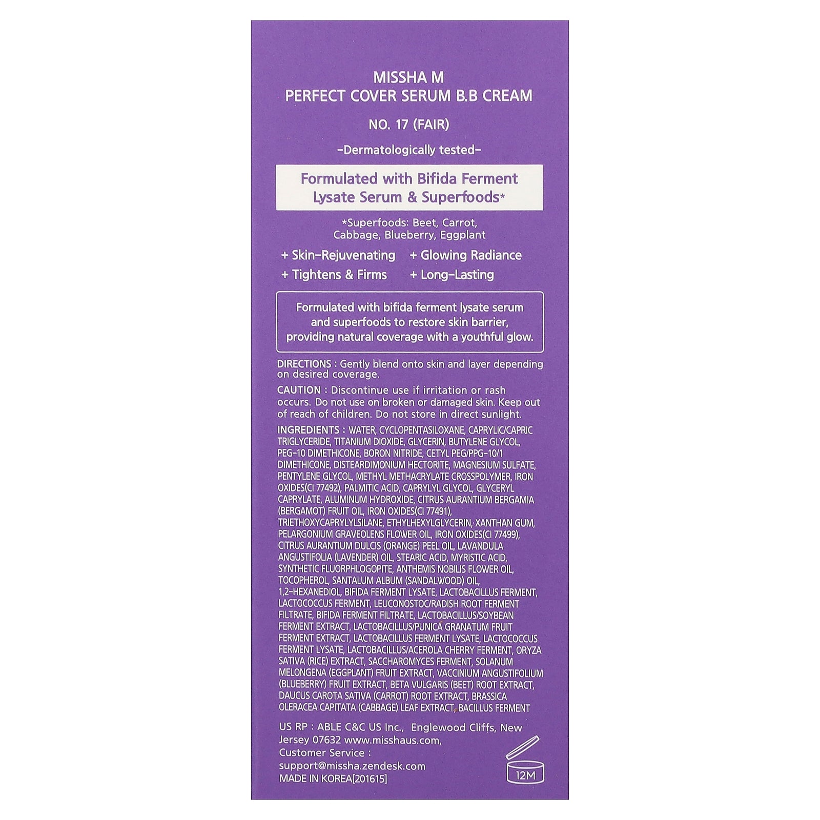 Water, cyclopentasiloxane, caprylic/capric triglyceride, titanium dioxide, glycerin, butylene glycol, peg-10 dimethicone, boron nitride, cetyl peg/ppg-10/1 dimethicone, disteardimonium hectorite, magnesium sulfate, pentylene glycol, methyl methacrylate crosspolymer, iron oxides(ci 77492), palmitic acid, caprylyl glycol, glyceryl caprylate, aluminum hydroxide, citrus aurantium bergamia (bergamot) fruit oil, iron oxides(ci 77491), triethoxycaprylylsilane, ethylhexylglycerin, xanthan gum, pelargonium graveolens flower oil, iron oxides(ci 77499), citrus aurantium dulcis (orange) peel oil, lavandula angustifolia (lavender) oil, stearic acid, myristic acid, synthetic fluorphlogopite, anthemis nobilis flower oil, tocopherol, santalum album (sandalwood) oil, 1,2-hexanediol, bifida ferment lysate, lactobacillus ferment, lactococcus ferment, leuconostoc/radish root ferment filtrate, bifida ferment filtrate, lactobacillus/soybean ferment extract, lactobacillus/punica granatum fruit ferment extract, lactobacillus ferment lysate, lactococcus ferment lysate, lactobacillus/acerola cherry ferment, oryza sativa (rice) extract, saccharomyces ferment, solanum melongena (eggplant) fruit extract, vaccinium angustifolium (blueberry) fruit extract, beta vulgaris (beet) root extract, daucus carota sativa (carrot) root extract, brassica oleracea capitata (cabbage) leaf extract, bacillus ferment.