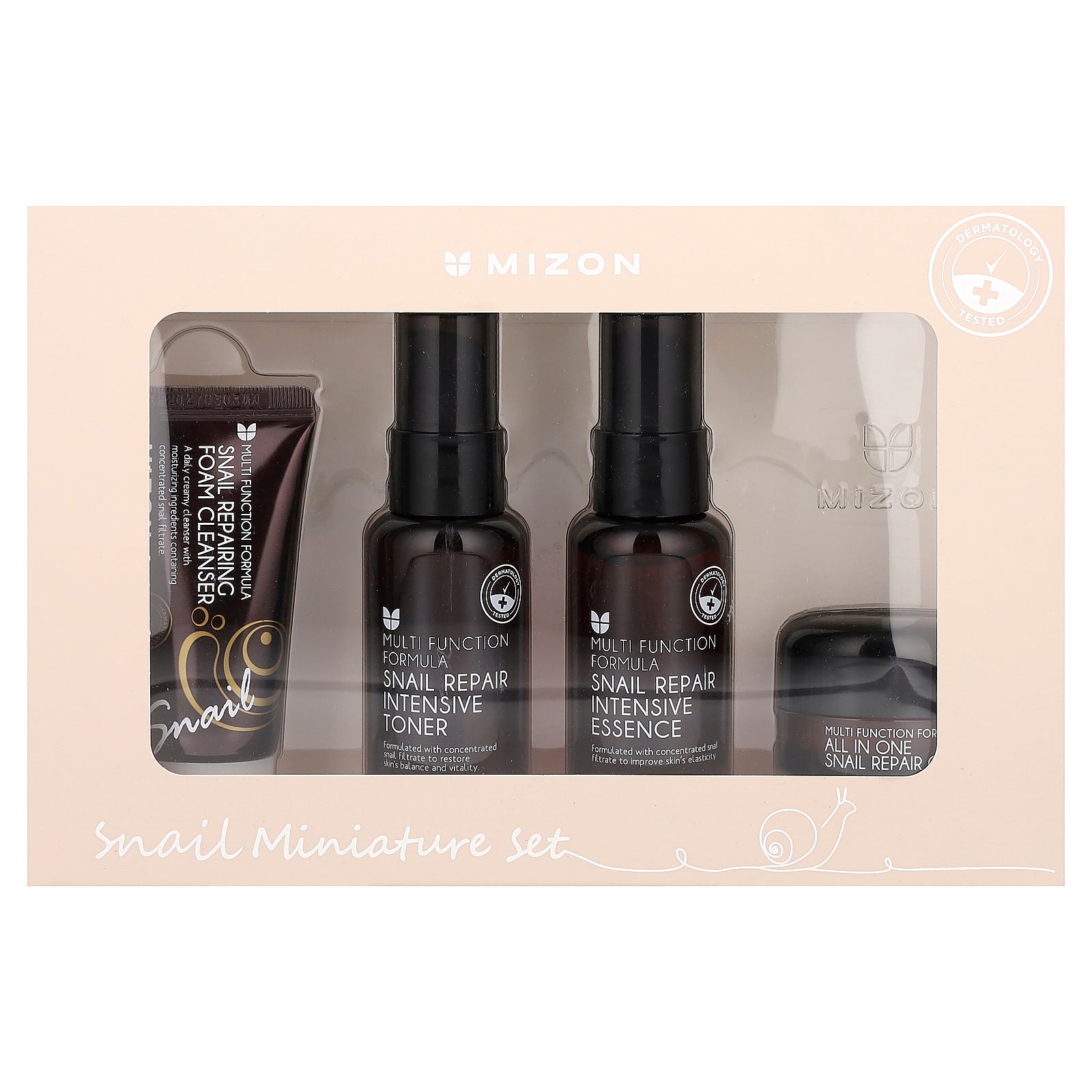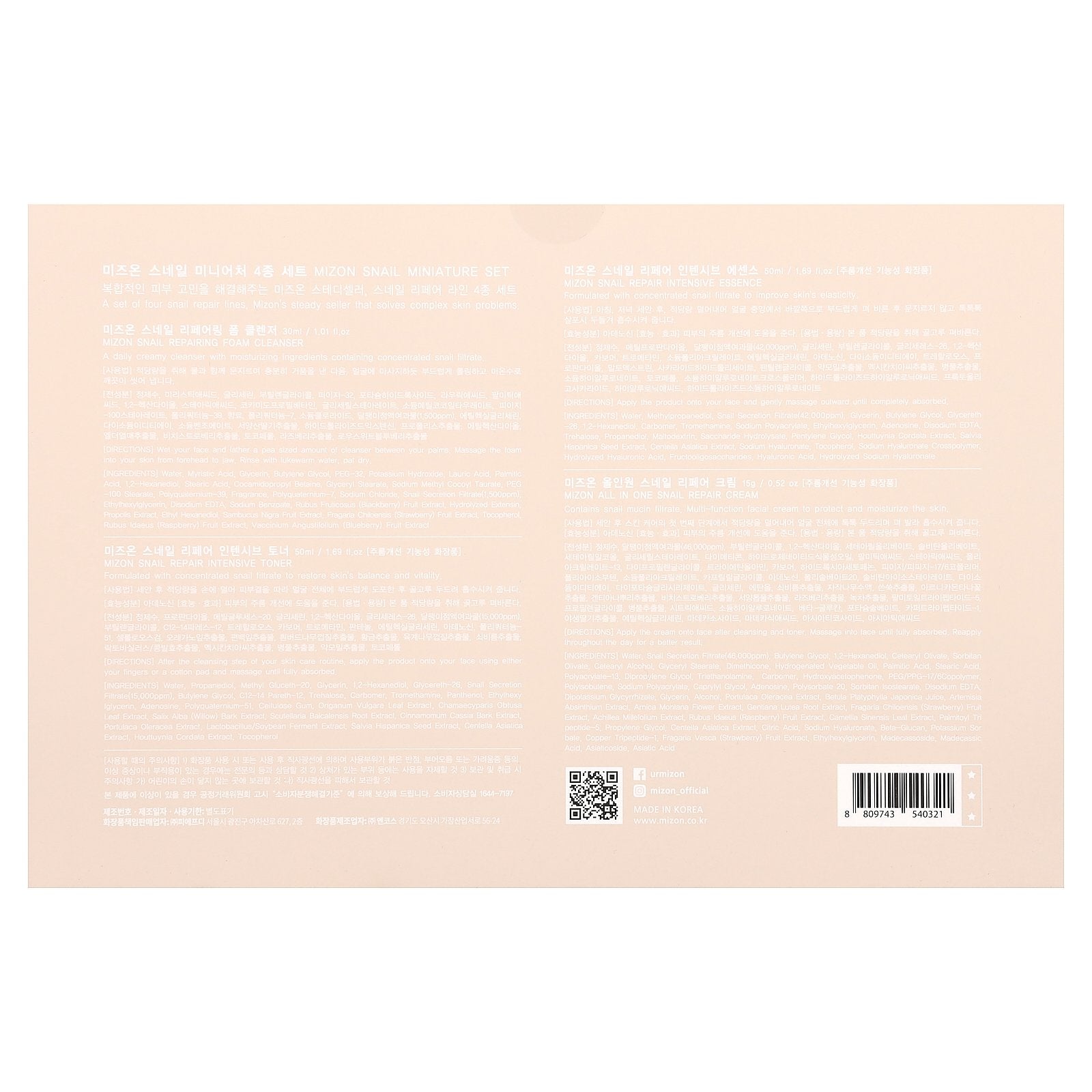 Dermatology tested. A set of four snail repair lines. Mizon's steady seller that solves complex skin problems.