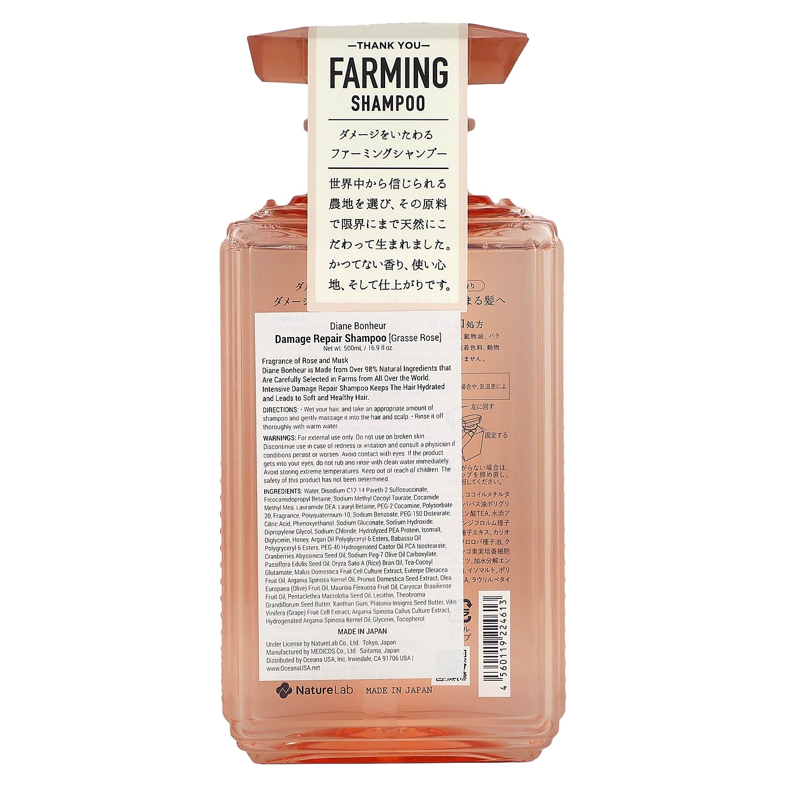 Diane Bonheur is made from over 98% natural ingredients that are carefully selected in farms from all over the world. Intensive damage repair shampoo keeps the hair hydrated and leads to soft and healthy hair.