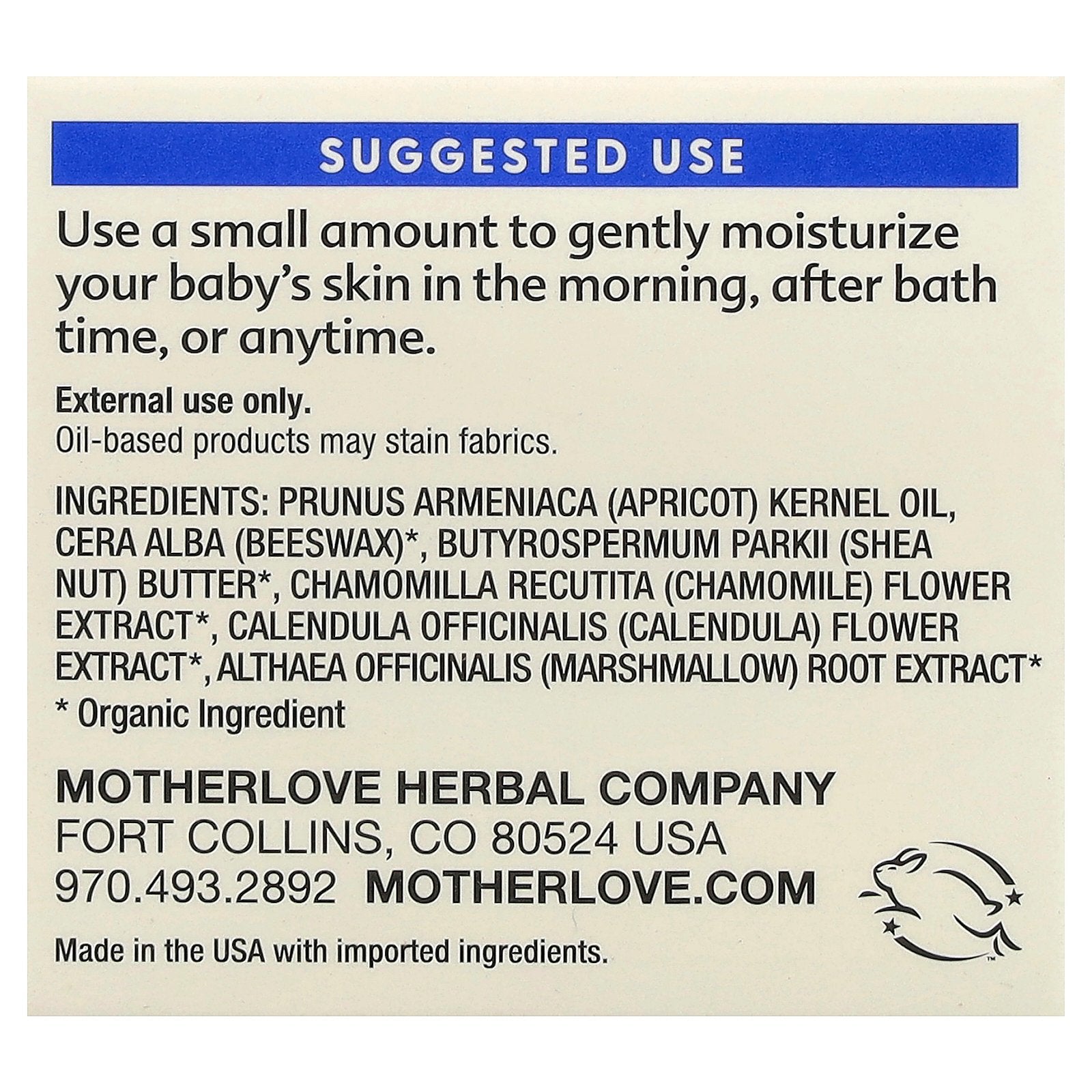 Prunus armeniaca (apricot) kernel oil, cera alba (beeswax)*, butyrospermum parkii (shea nut) butter*, chamomilla recutita (chamomile) flower extract*, calendula officinalis (calendula) flower extract*, althaea officinalis (marshmallow) root extract*.
