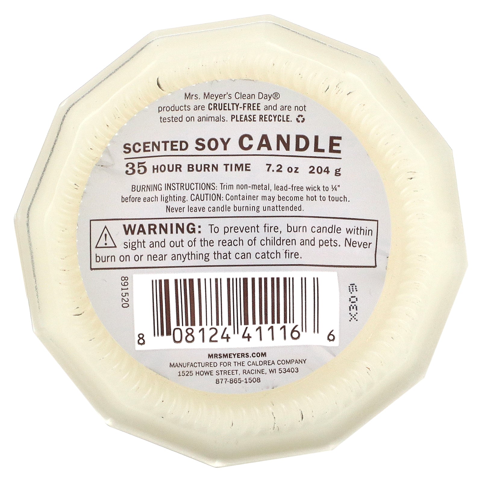 Burning Instruction: Trim non-metal, lead-free wick to 1/4" before each lighting.