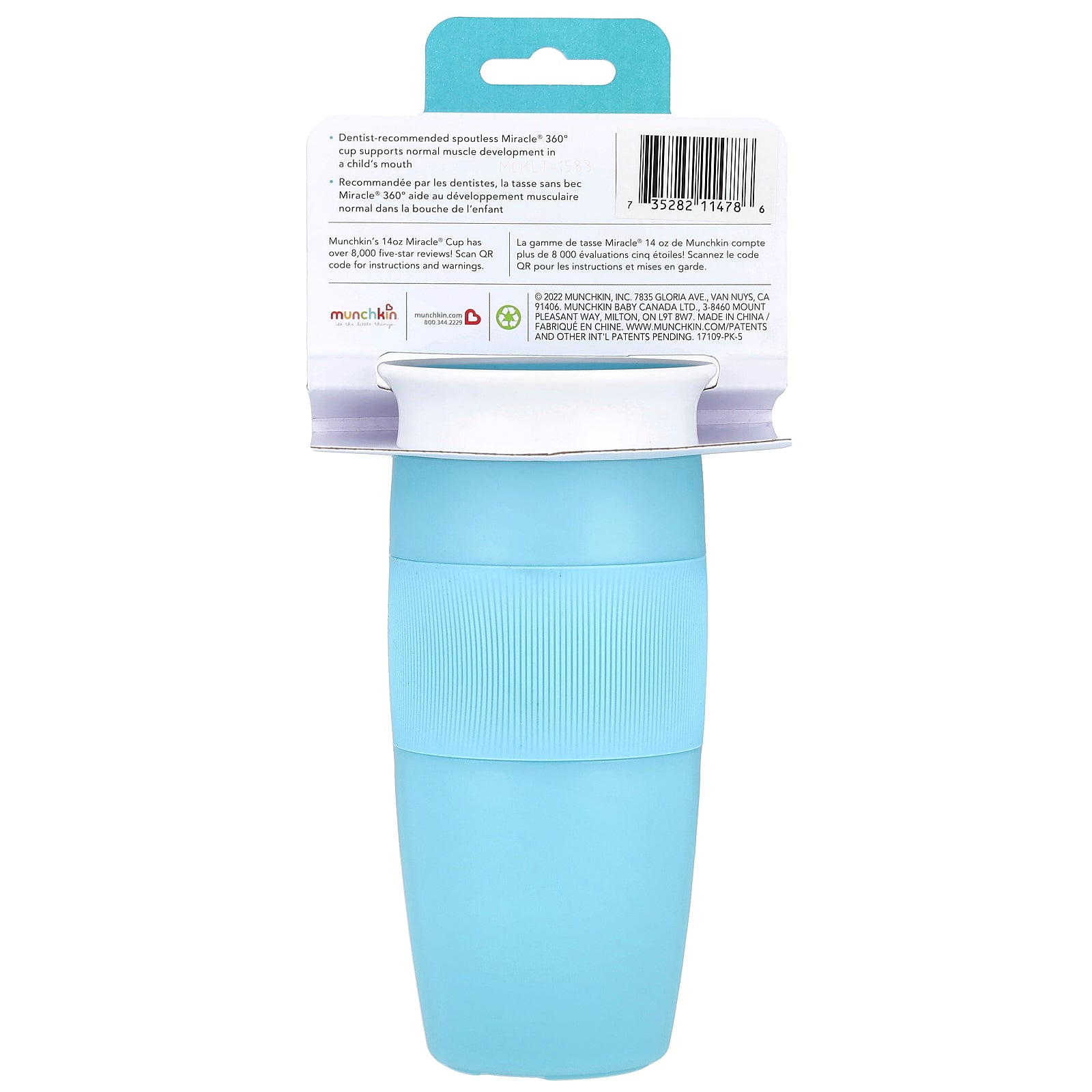 Dentist recommended spoutless Miracle® 360° cup supports normal muscle development in a child's mouth.