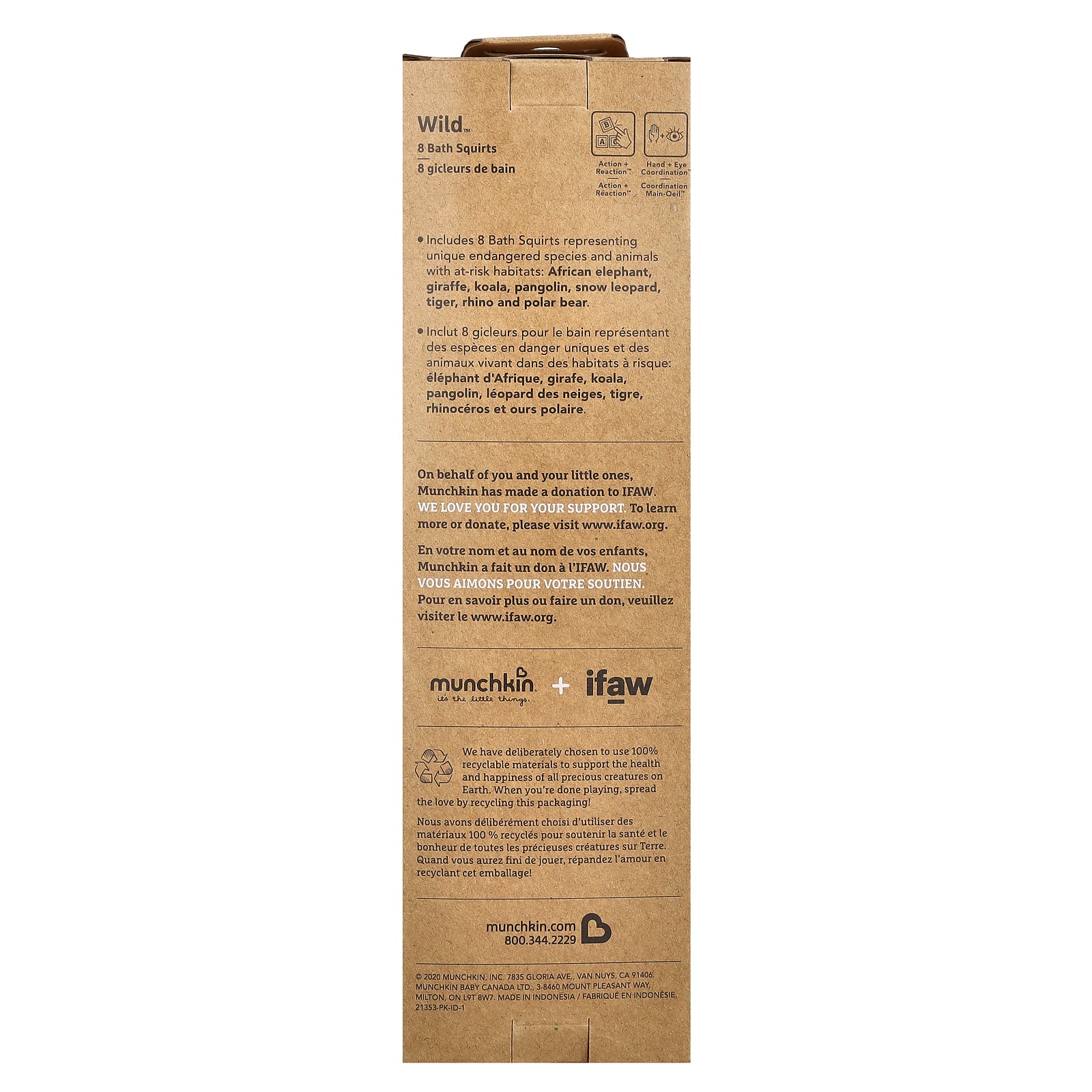 Includes 8 Bath Squirts representing unique endangered species and animals with at-risk habitats: African elephant, giraffe, koala, pangolin, snow leopard, tiger, rhino and polar bear.