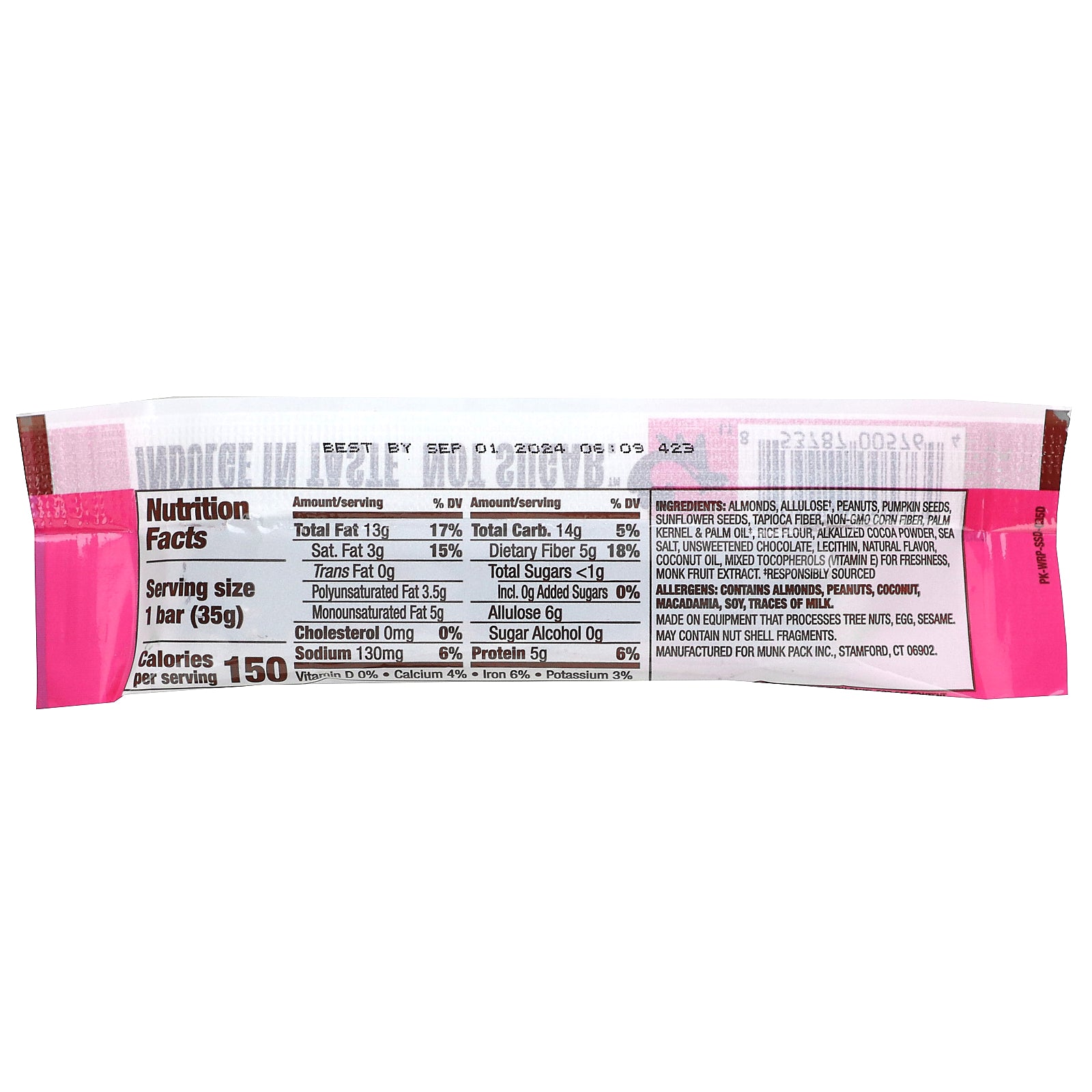 Almonds, allulose†, peanuts, pumpkin seeds, sunflower seeds, tapioca fiber, non-gmo corn fiber, palm kernel & palm oil‡, rice flour, alkalized cocoa powder, sea salt, unsweetened chocolate, lecithin, natural flavor, coconut oil, mixed tocopherols (vitamin e) for freshness, monk fruit extract.