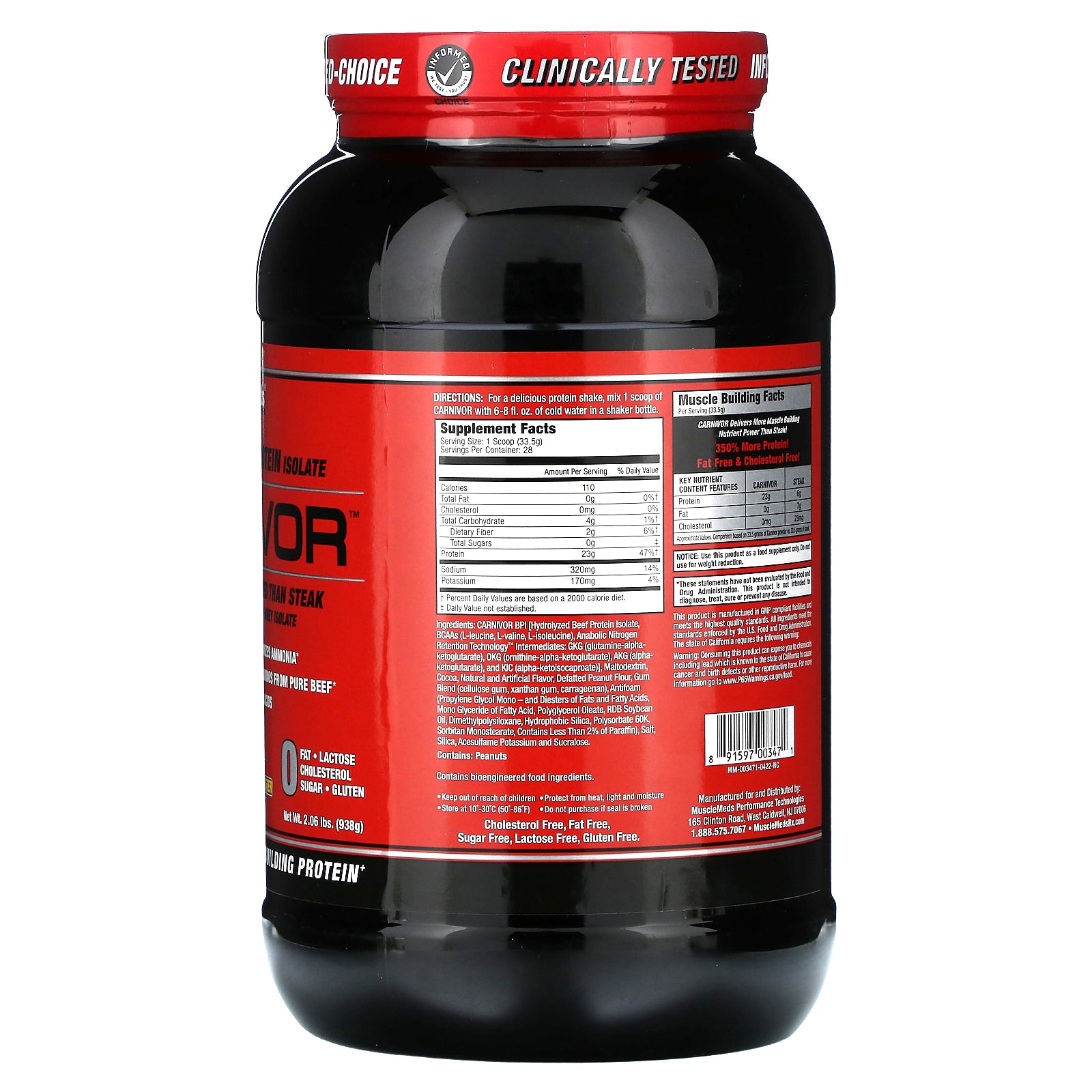 It has long been known that bodybuilders and strength athletes consume high amounts of beef to help build muscle and increase strength. The muscle building power of beef cannot be disputed. Ask most any bodybuilder and they will tell you that they make their biggest muscle gains and feel their strongest when they eat beef. Now, thanks to the development of an advanced bioengineered beef protein, MuscleMeds has formulated a highly anabolic muscle building protein. Carnivor is unlike any other protein supplement in existence.
