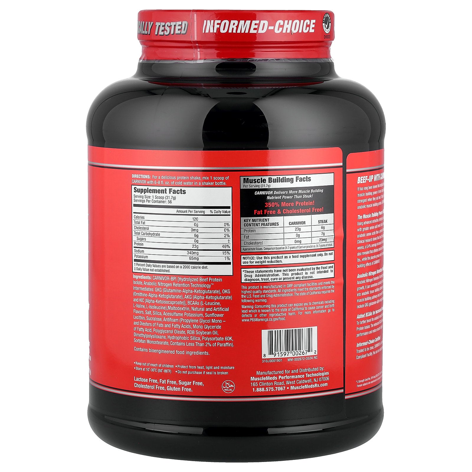 It has long been known that bodybuilders and strength athletes consume high amounts of beef to help build muscle and increase strength. The muscle building power of beef cannot be disputed. Most bodybuilders will tell you that they make their biggest muscle gains and feel their strongest when they eat beef. Thanks to the development of an advanced bioengineered beef protein, MuscleMeds has formulated a highly anabolic muscle building protein. CARNIVOR is unlike any other protein supplement in existence.