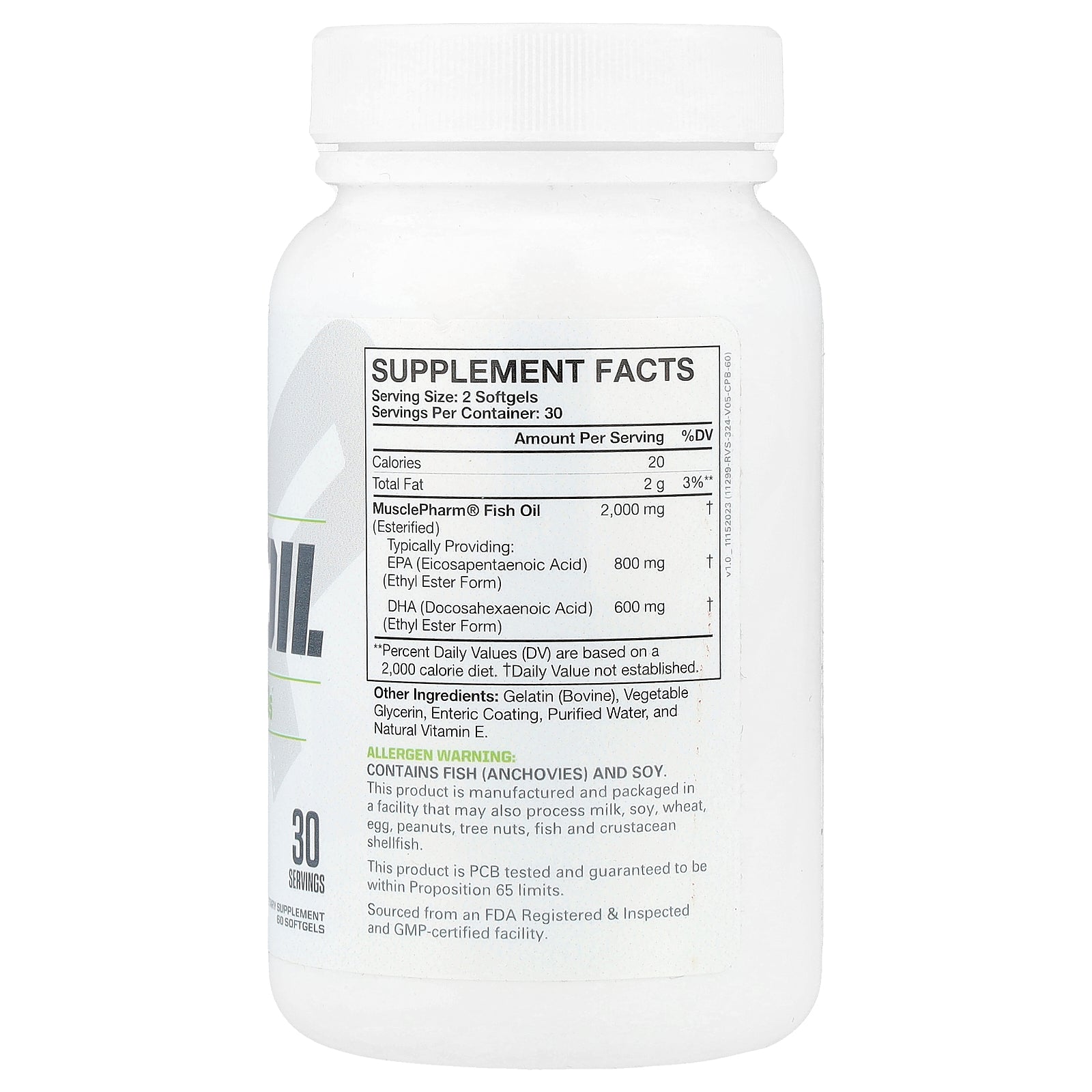 MusclePharm® Fish Oil contains 2,000 mg of fish oil per serving to help support heart, brain, immune system, and joint health. Loaded with a rich source of omega-3 fatty acids and typically providing 800 mg of EPA and 600 mg of DHA (as EPA/DHA ethyl-esters), each beneficial serving of these elite omega-3 fish oils can help you take the next step toward achieving your daily health and fitness goals.