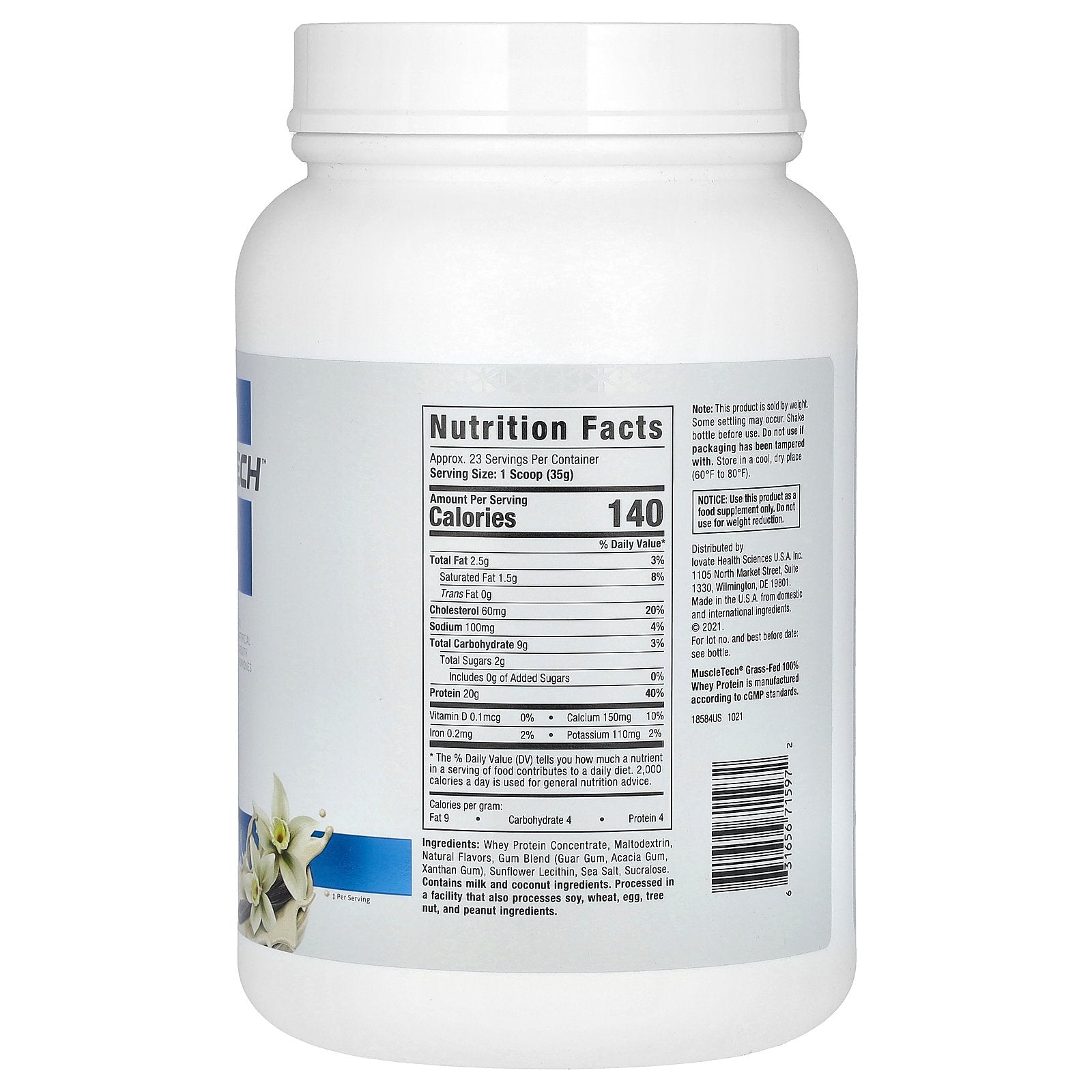 MuscleTech® Grass-Fed 100% Whey Protein is manufactured according to cGMP standards.