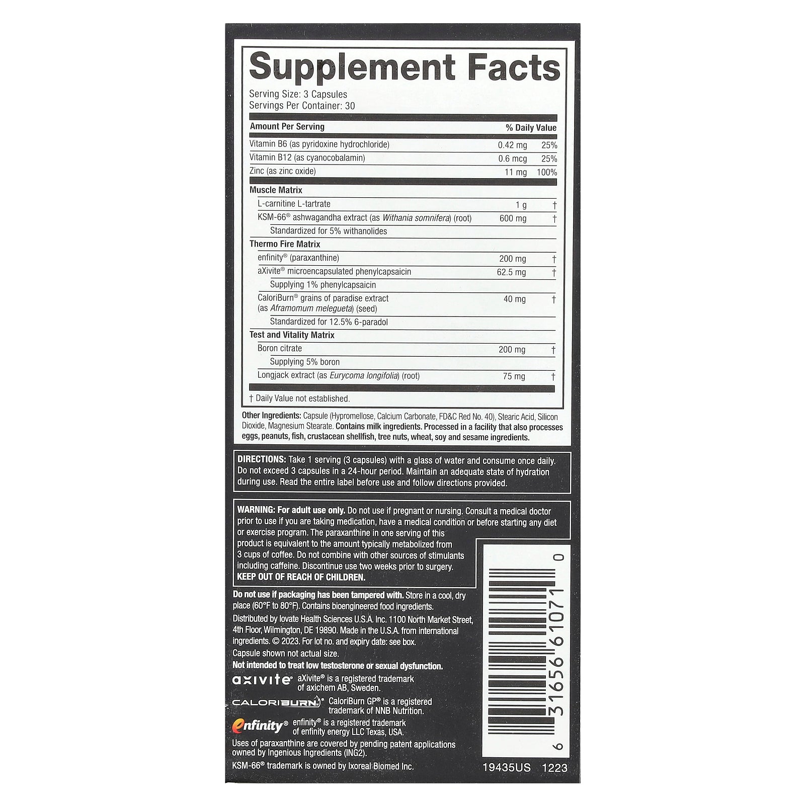 AlphaTest® Thermo XTR is the most powerful testosterone and thermogenic formula we've ever formulated! This scientific breakthrough combines KSM-66 R ashwagandha, enfinity® paraxanthine, grains of paradise (6-paradol), aXivite® phenylcapsaicin and clinically tested boron. AlphaTest® Thermo XTR enhances testosterone production while energizing your training, for jaw-dropping results!