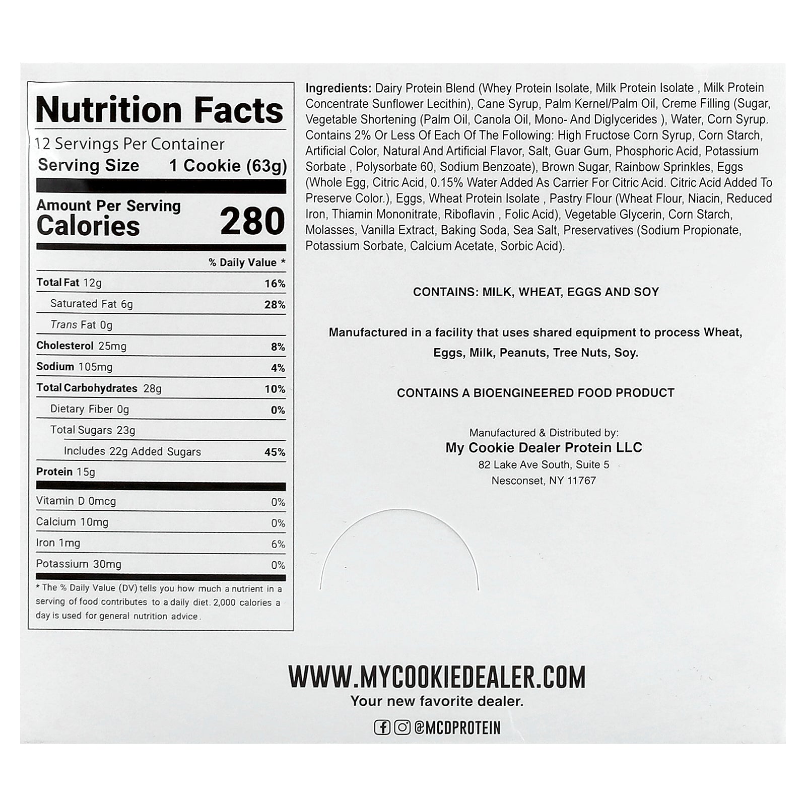 Celebrate every day like it's your birthday with My Cookie Dealer’s Birthday Cake Flavor Protein Cookie! This festive treat combines the nostalgic joy of a classic birthday cake with the nutritional boost of high-quality protein. Each oversized cookie is a burst of fun, featuring a soft, buttery base infused with sweet vanilla and speckled with colorful confetti sprinkles. Perfect for those looking to indulge their sweet tooth while supporting their health goals, this cookie offers a delicious way to fuel your body and satisfy your cravings. Whether you’re in the gym or on the go, make every day a celebration with a cookie that’s as nutritious as it is delightful!