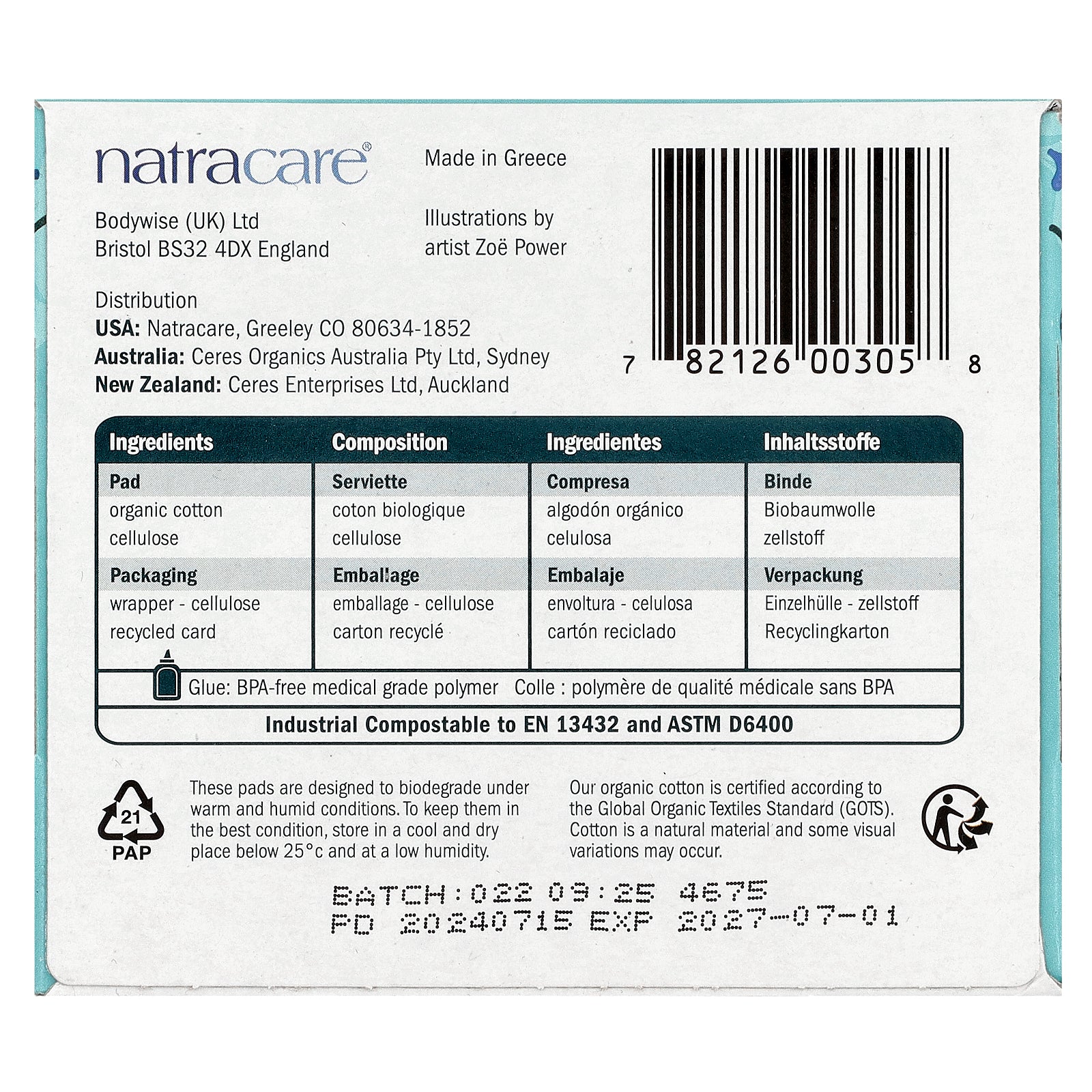 Pad: Organic cotton, cellulose.