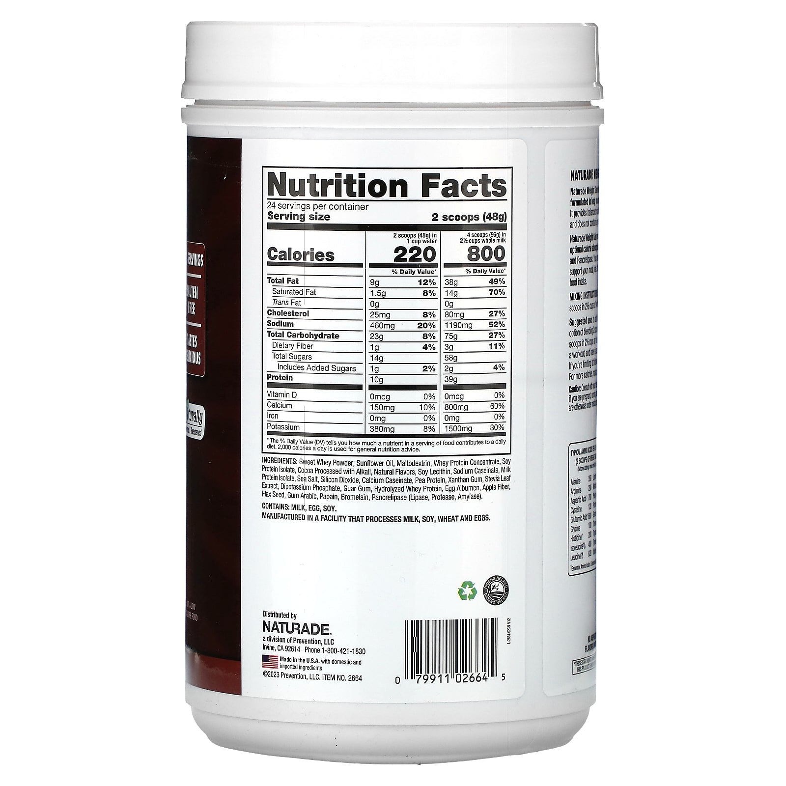 In addition to balanced daily nutrition, you have the option of blending 2 scoops in 1 cup water, or to maximize calories, 4 scoops in 2½ cups of whole milk. Drink before noon, preferably before a workout, and have a second shake about 1 hour before you go to bed. If you're limiting fat intake, Naturade Weight Gain tastes great in water. For more calories, makes delicious smoothies with yogurt and/or fruit.