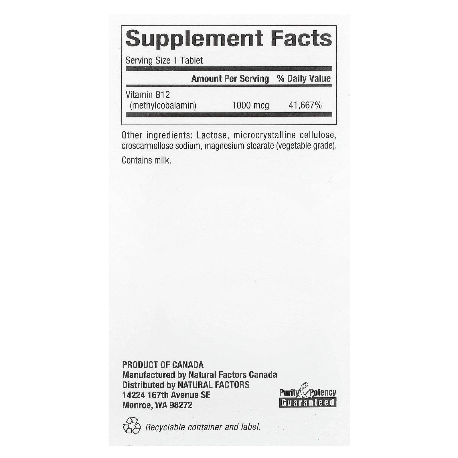 | Vitamin B12 (methylcobalamin) | 1000 mcg | 41,667% |