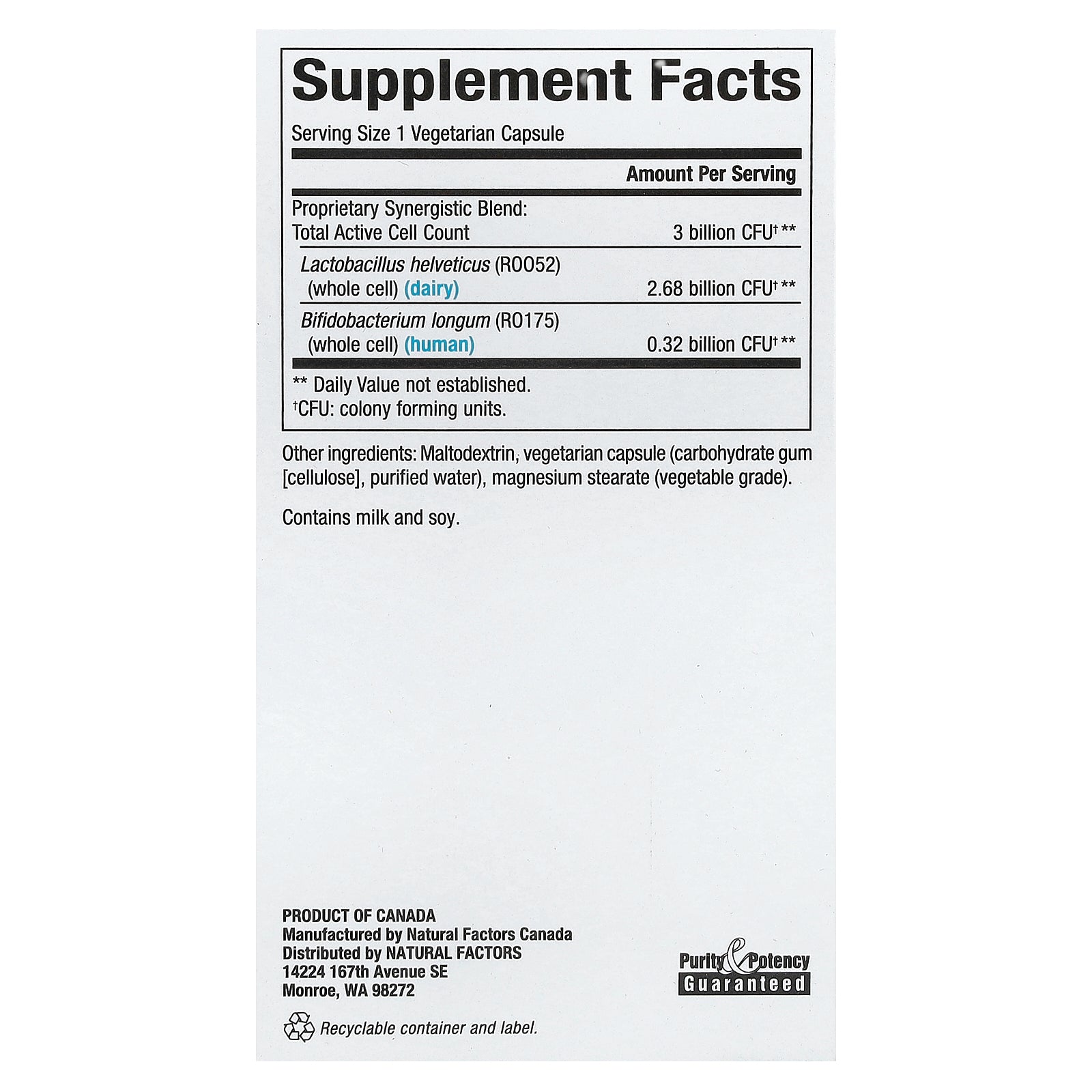 - 3 Billion Live Probiotic Cultures†