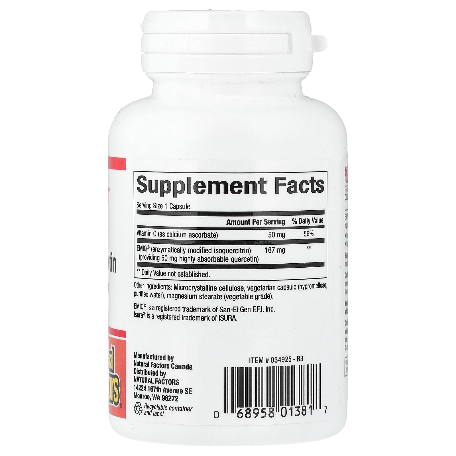 | EMIQ® (enzymatically modified isoquercitrin) (providing 50 mg highly absorbable quercetin) |