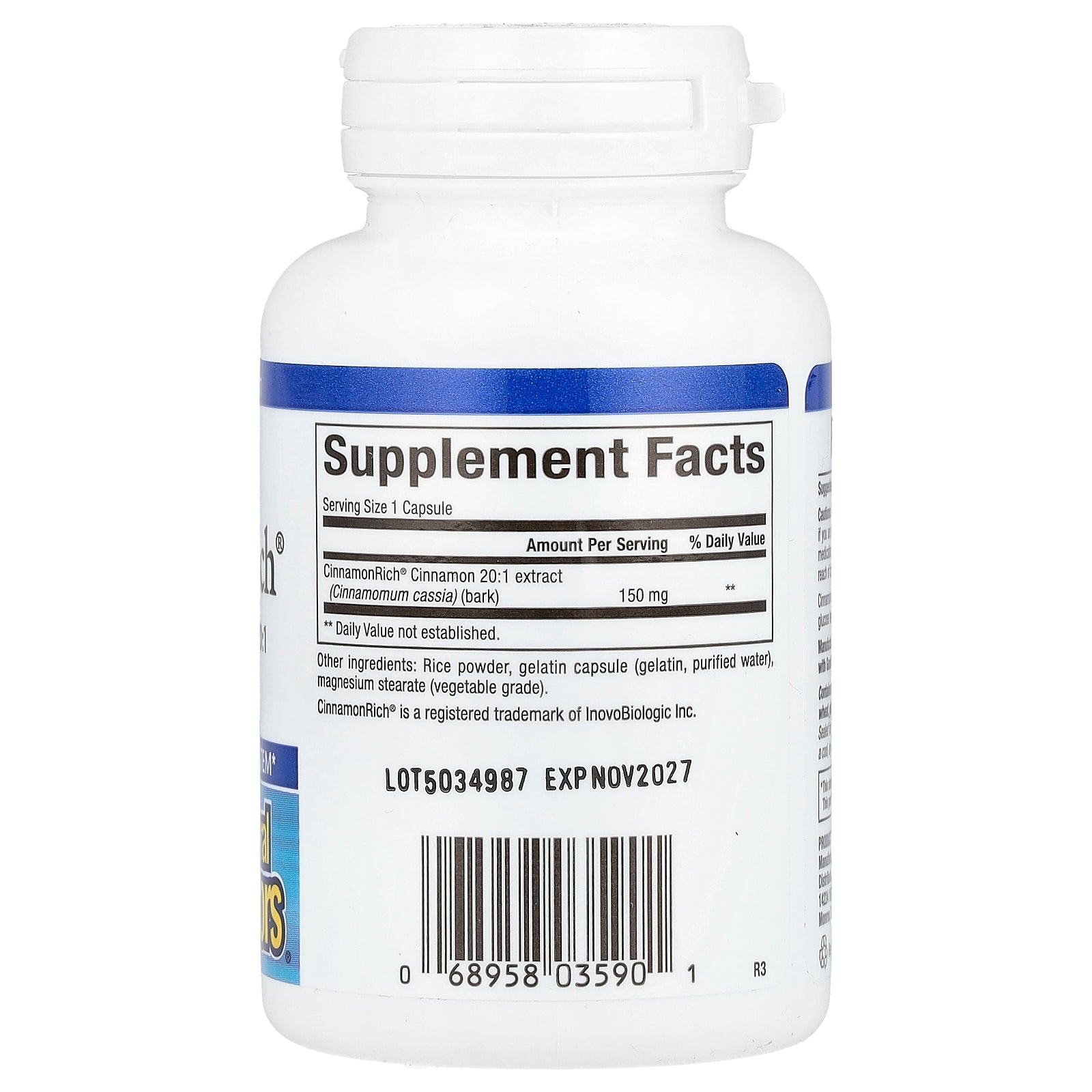 | CinnamonRich® Cinnamon 20:1 extract (Cinnamomum cassia) (bark) | 150 mg | ** |