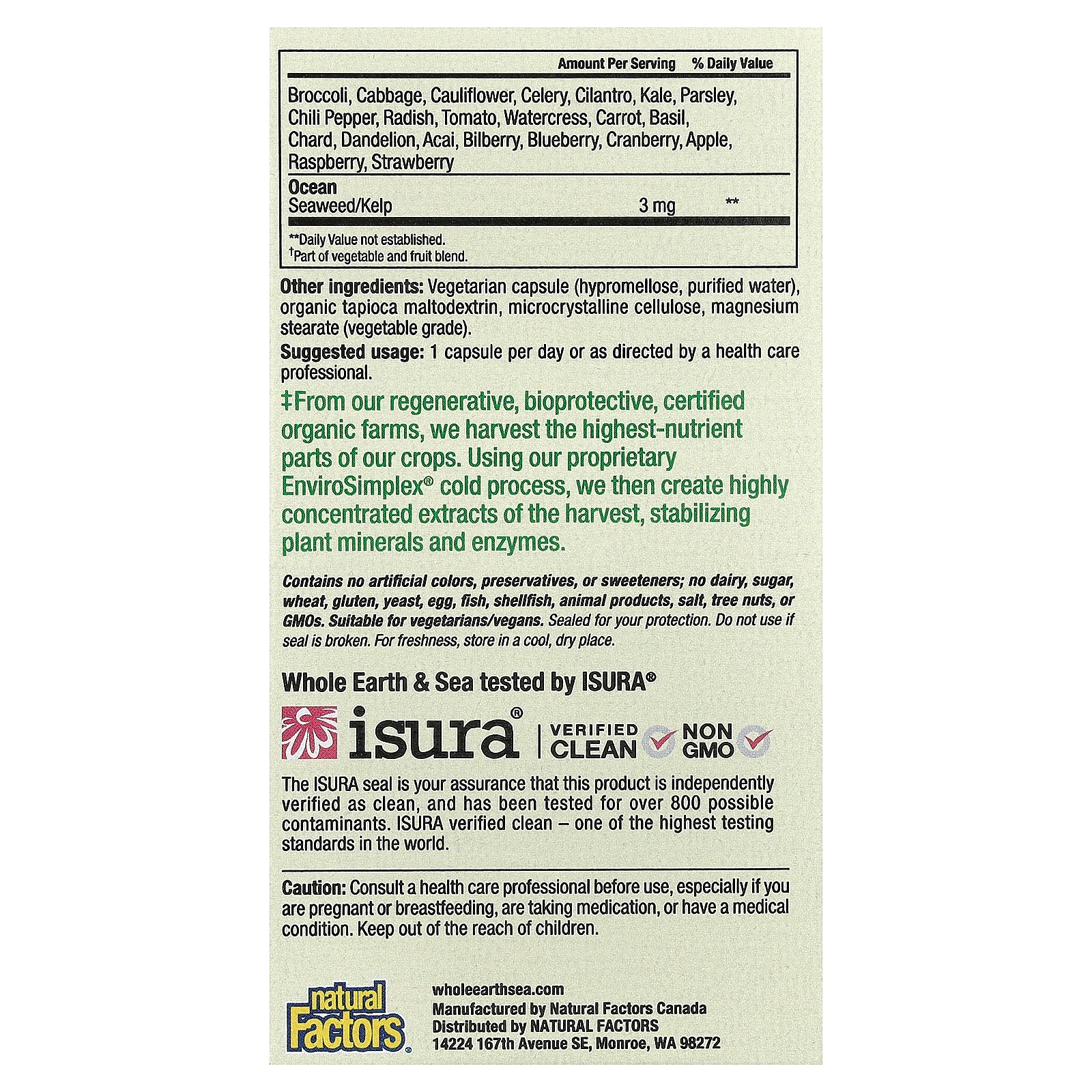 | **Daily Value not established. †Part of vegetable and fruit blend. ‡From our regenerative, bioprotective, certified organic farms, we harvest the highest-nutrient parts of our crops. Using our proprietary EnviroSimplex® cold process, we then create highly concentrated extracts of the harvest, stabilizing plant minerals and enzymes. | ||