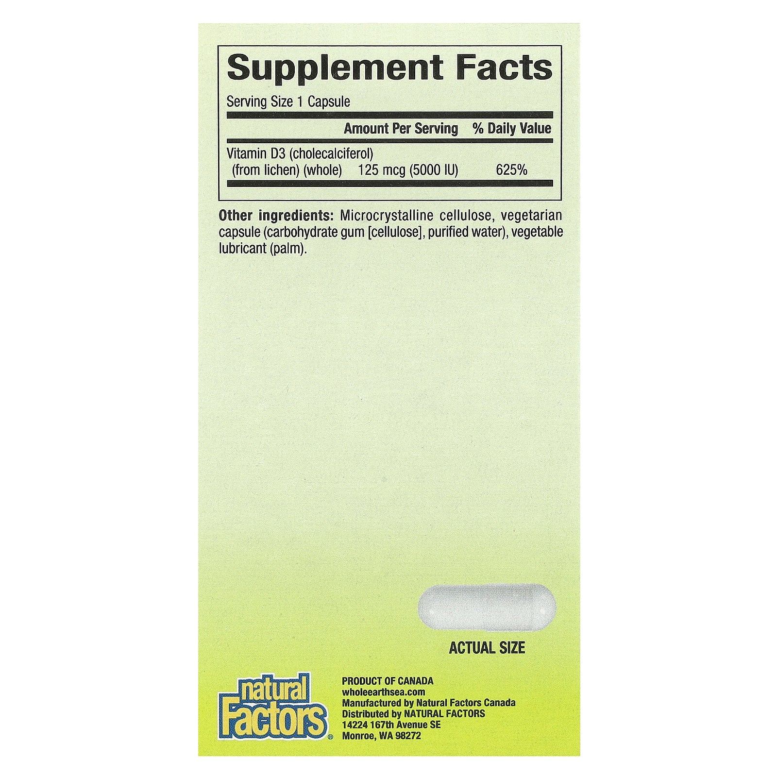 | Vitamin D3 (cholecalciferol) (from lichen) (whole) | 125 mcg (5000 IU) | 625% |