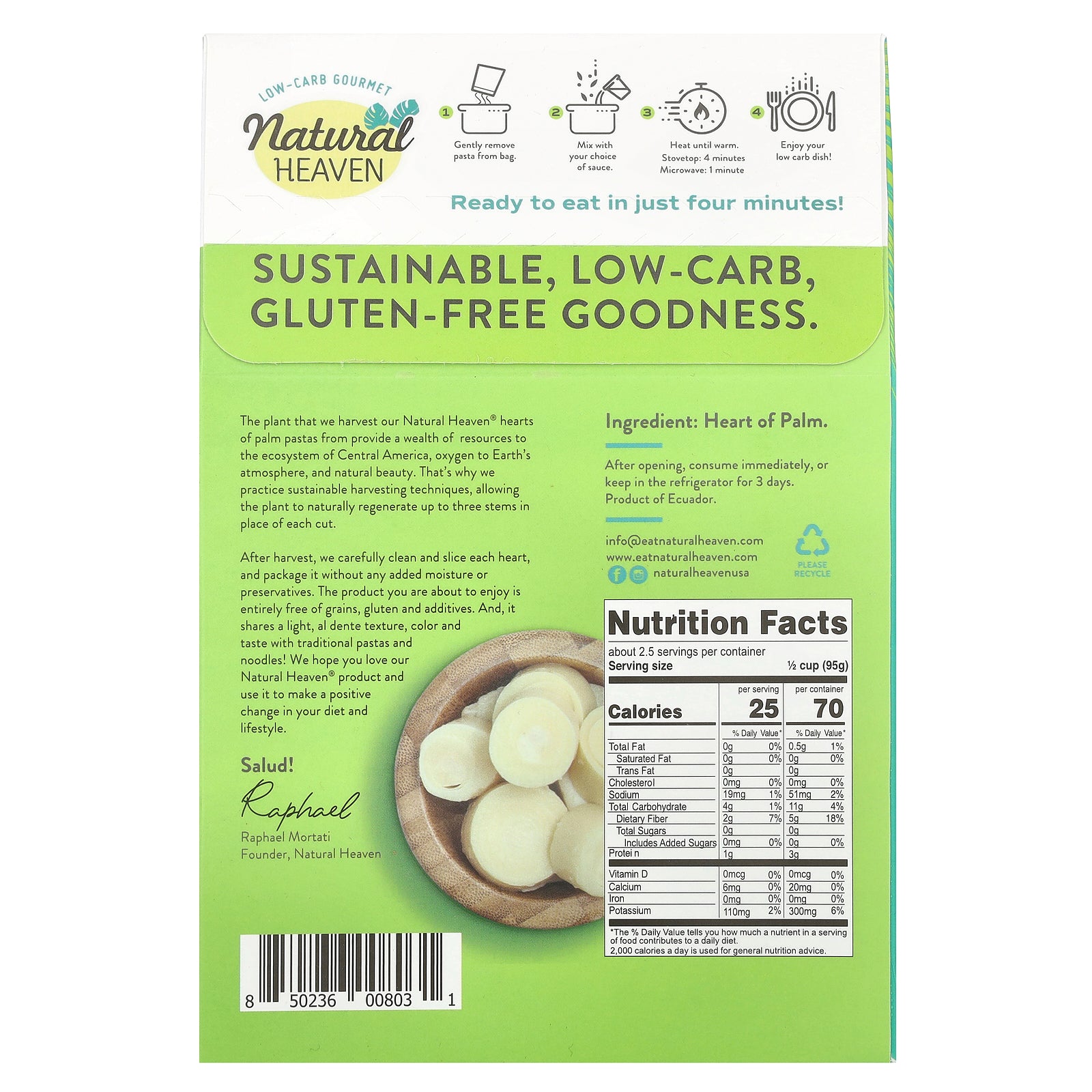 After harvest, we carefully clean and slice each heart, and package it without any added moisture or preservatives. The product you are about to enjoy is entirely free of grains, gluten and additives. And, it shares a light, al dente texture, color and taste with traditional pastas and noodles! We hope you love our Natural Heaven® product and use it to make a positive change in your diet and lifestyle.