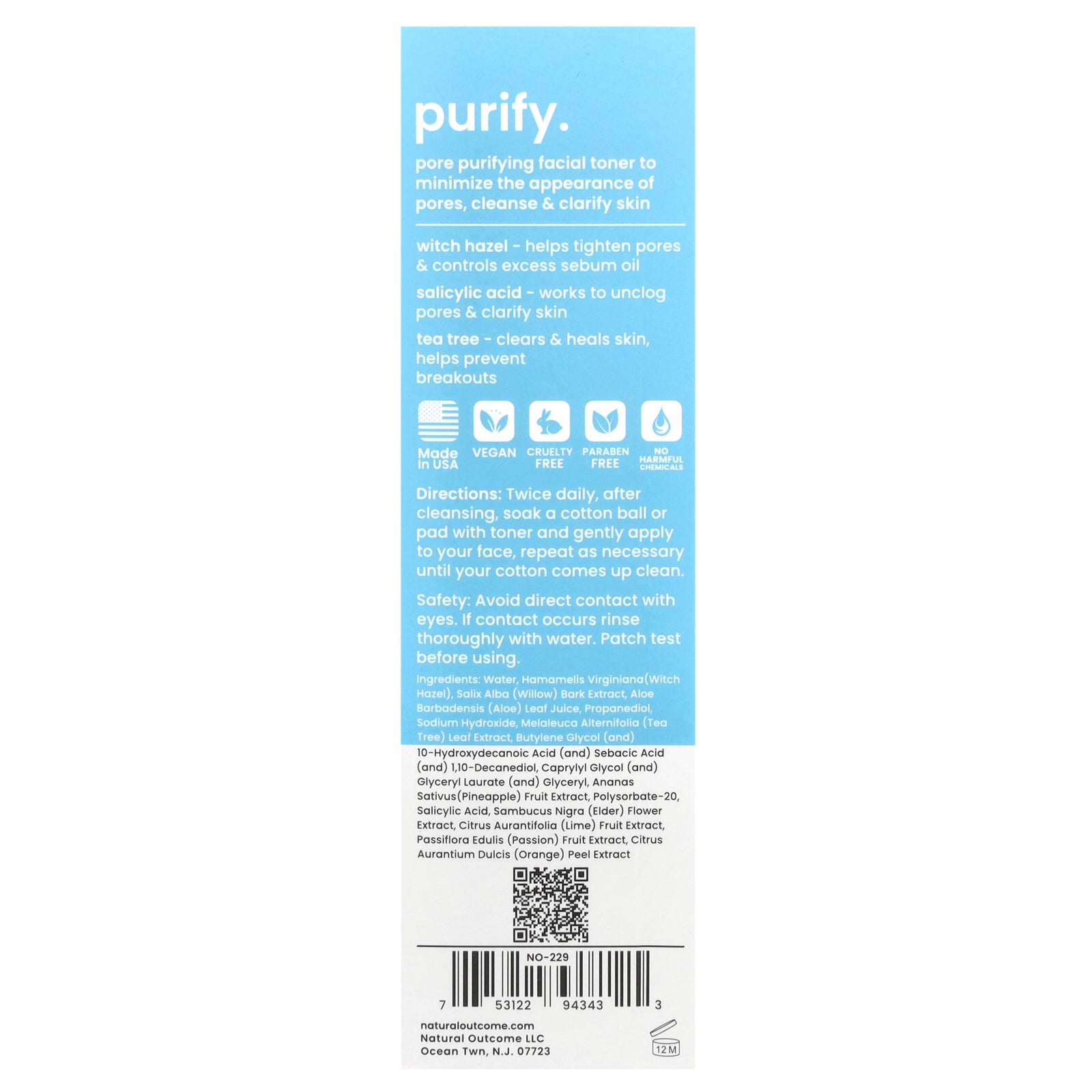 Pore purifying facial toner to minimize the appearance of pores, cleanse & clarify skin.