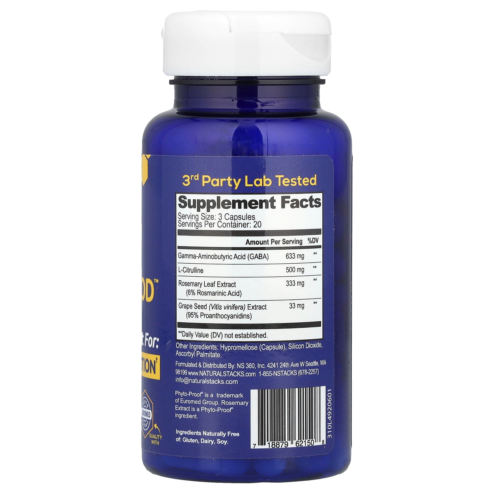Consult a healthcare practitioner before taking this or any nutritional supplement if you are pregnant/nursing, have or suspect a medical condition, have a bleeding disorder, are taking any medications (particularly blood pressure or other vasodilating medications), or other non-Natural Stacks® dietary supplements. Do not use if safety seal is broken or missing. Store in a cool dry place. Keep out of reach of children.