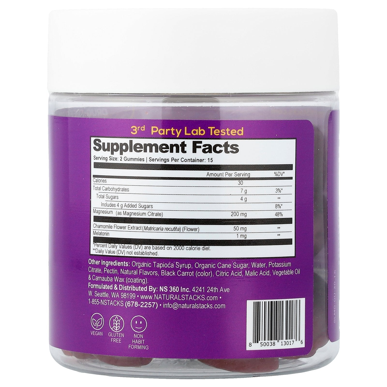 Product is for adults (18+) only. For occasional and/or intermittent use only. Take only as directed/Do not exceed recommended intake/Do not exceed suggested serving [unless recommended by a healthcare professional]. Consult a healthcare practitioner prior to first use if taking other medications, if you have a medical condition, supplements, pregnant, breast feeding, or If you are experiencing long-term sleep difficulties. Melatonin may cause drowsiness. Do not take with alcohol. Melatonin may cause drowsiness. If you feel groggy, do not drive or operate machinery. If you have a known allergy to chamomile avoid using this product. Store in a cool dry place away from direct sunlight. Avoid excessive heat. Gummies may stick together in warmer climates but this does not affect the quality or efficacy. Keep out of reach of children. Store in a cool, dry place. Do not freeze.