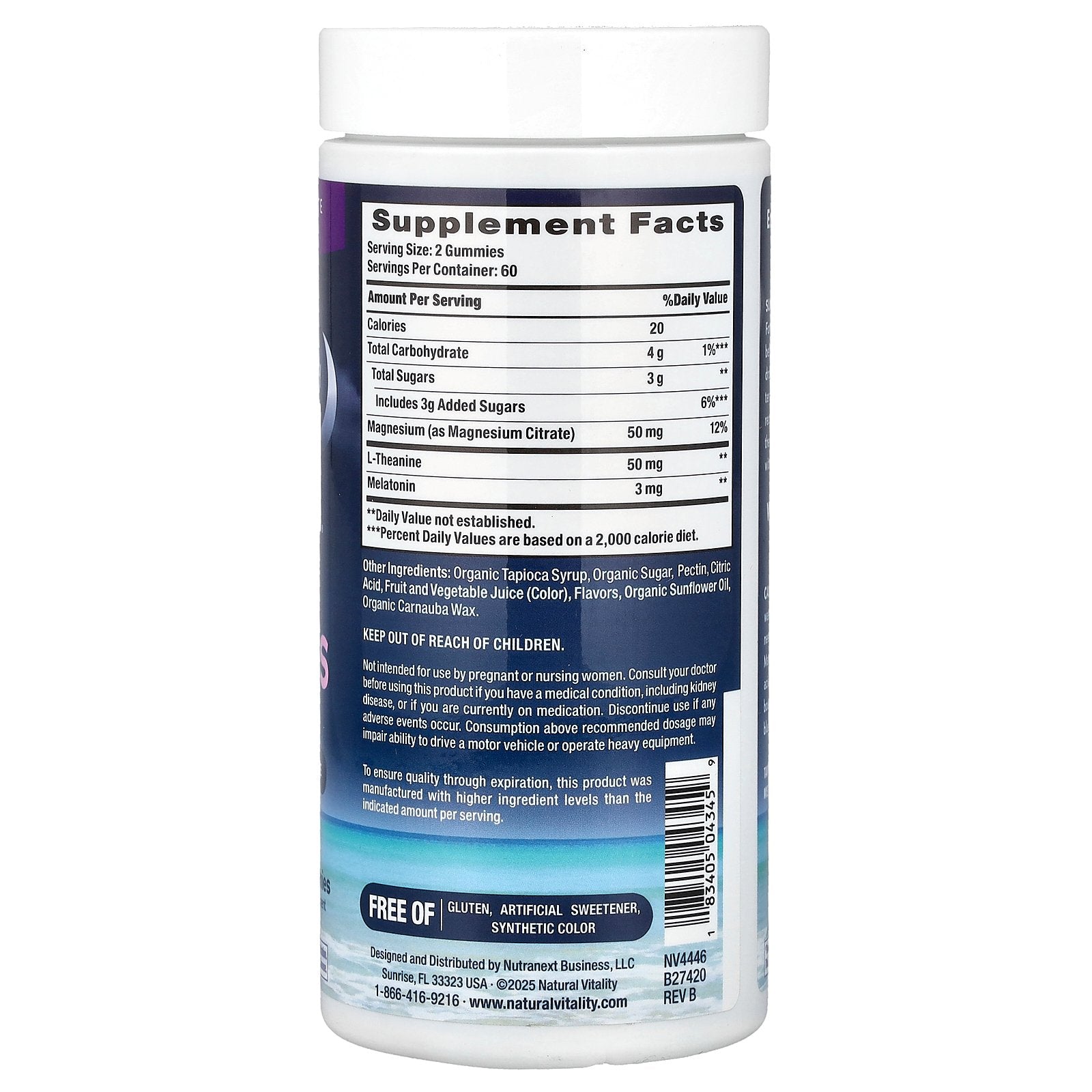 Calmful Sleep: Natural Vitality CALM® Sleep was developed specifically for those times we need extra sleep support. It features lonic Magnesium Citrate along with the powerful amino acid L-Theanine and Melatonin, which helps the body ease into restful sleep, all in delicious blueberry pomegranate flavored gummies.