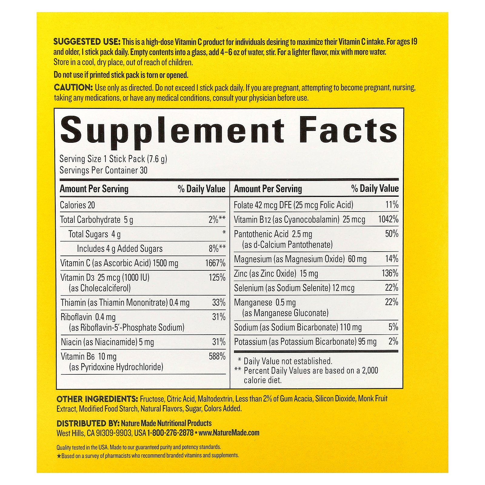 This is a high-dose vitamin C product for individuals desiring to maximize their vitamin C intake. For ages 19 and older, 1 stick pack daily. Empty contents into a glass, add 4-6 oz of water, stir. For a lighter flavor, mix with more water.