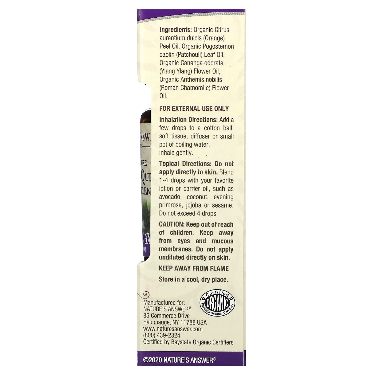 As a pioneer in botanical extract technology since 1972, Natures Answer® supplies 100% pure, certified organic essential oils.